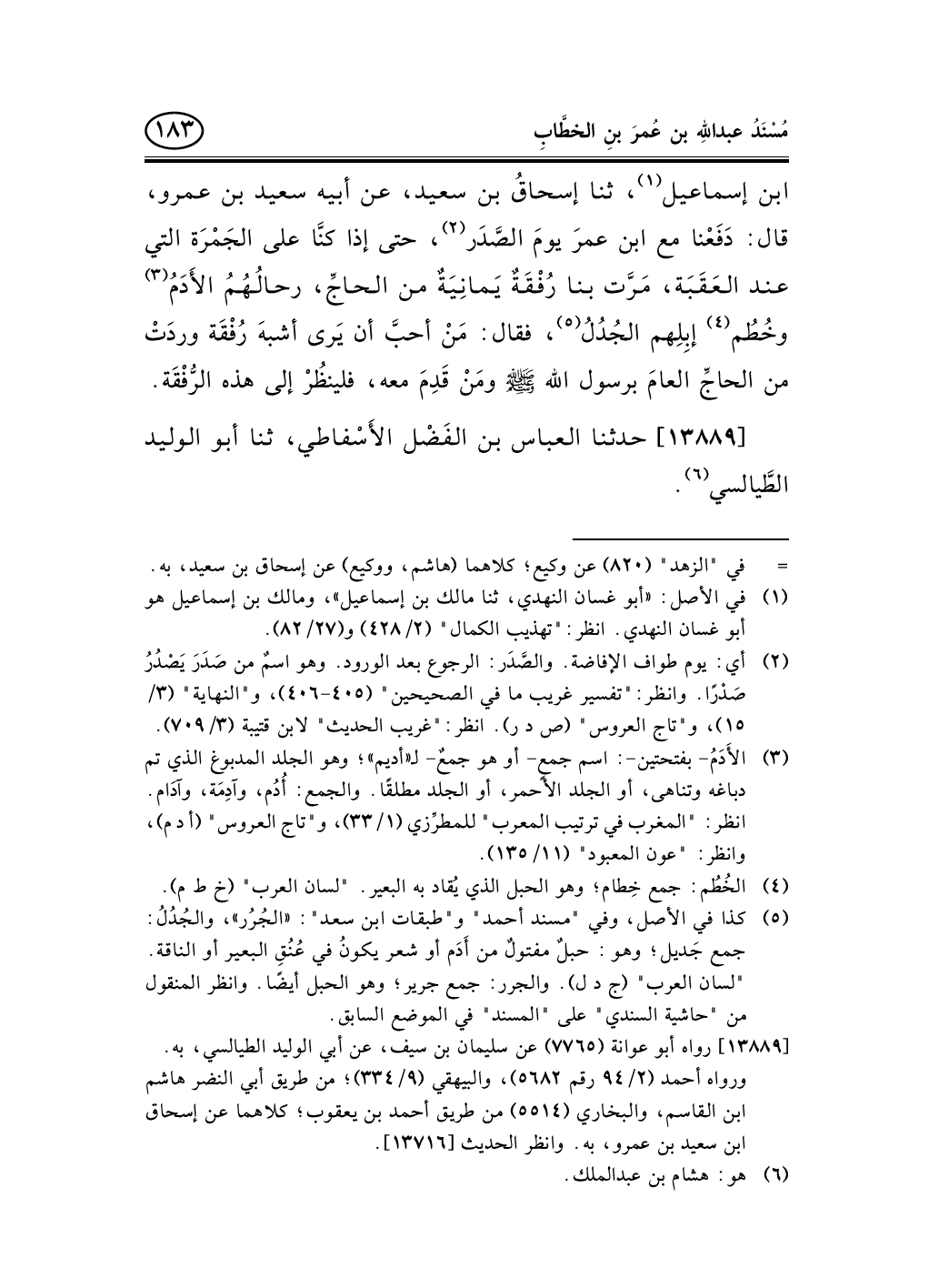 ورواه أحمد (2/94 رقم 5682) ، والبيهقي (9/334) ؛ من طريق أبي النضر هاشم ابن القاسم، والبخاري (5514) من طريق أحمد بن يعقوب؛ كلاهما عن إسحاق ابن سعيد بن عمرو، به. وانظر الحديث [13716] .