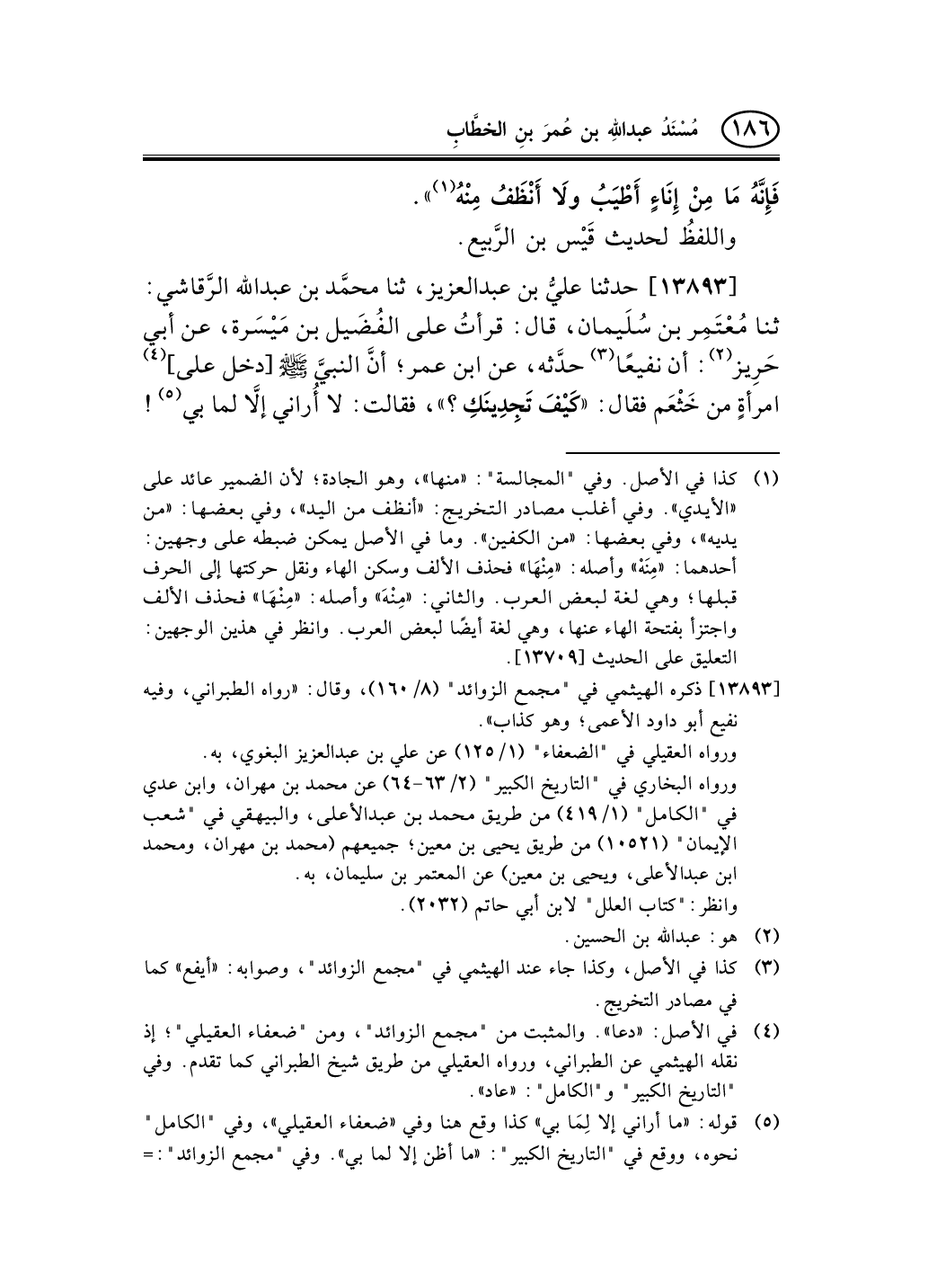 (¬3) في الأصل: «دعا» . والمثبت من "مجمع الزوائد"، ومن "ضعفاء العقيلي"؛ إذ نقله الهيثمي عن الطبراني، ورواه العقيلي من طريق شيخ الطبراني كما تقدم. وفي "التاريخ الكبير" و"الكامل": «عاد» .