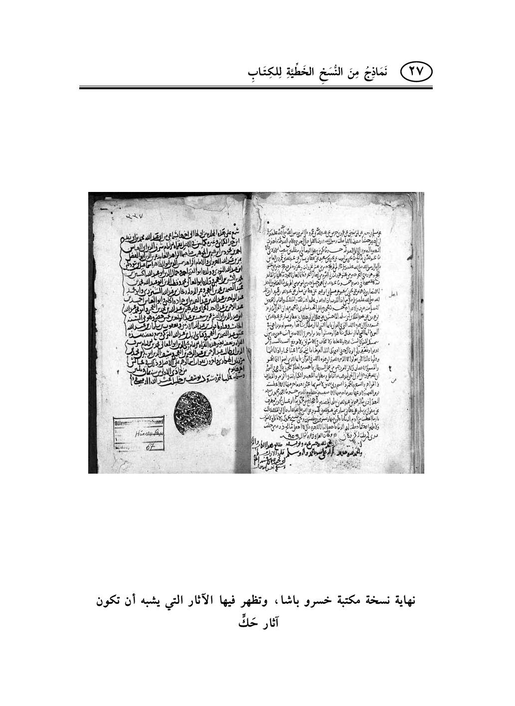 نهاية نسخة مكتبة خسرو باشا، وتظهر فيها الآثار التي يشبه أن تكون آثار حَكٍّ