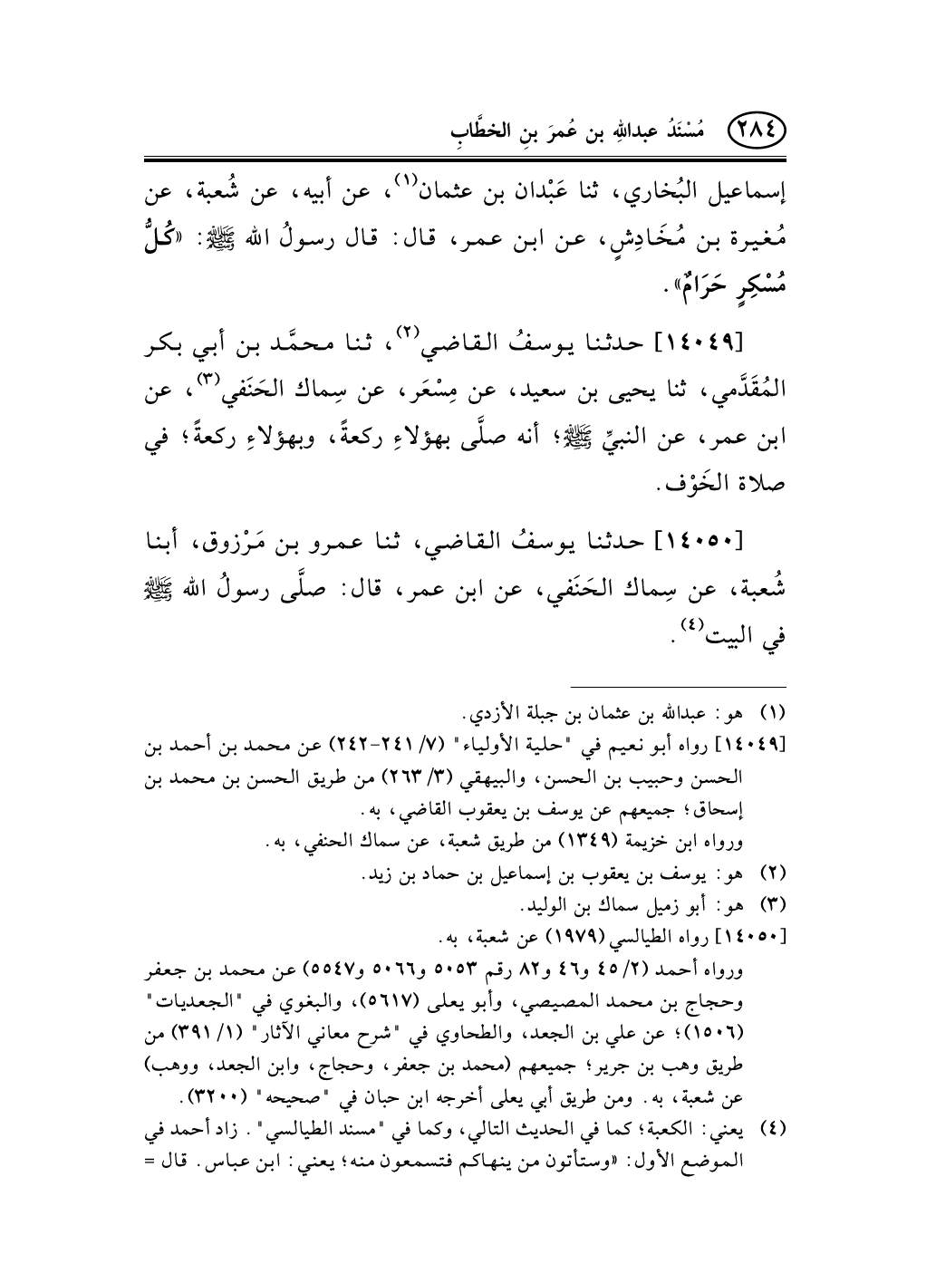 14050 - حدثنا يوسفُ القاضي، ثنا عمرو بن مَرْزوق، أبنا شُعبة، عن سِماك الحَنَفي، عن ابن عمر، قال: صلَّى رسولُ الله صلى الله عليه وسلم في البيت (¬1) .