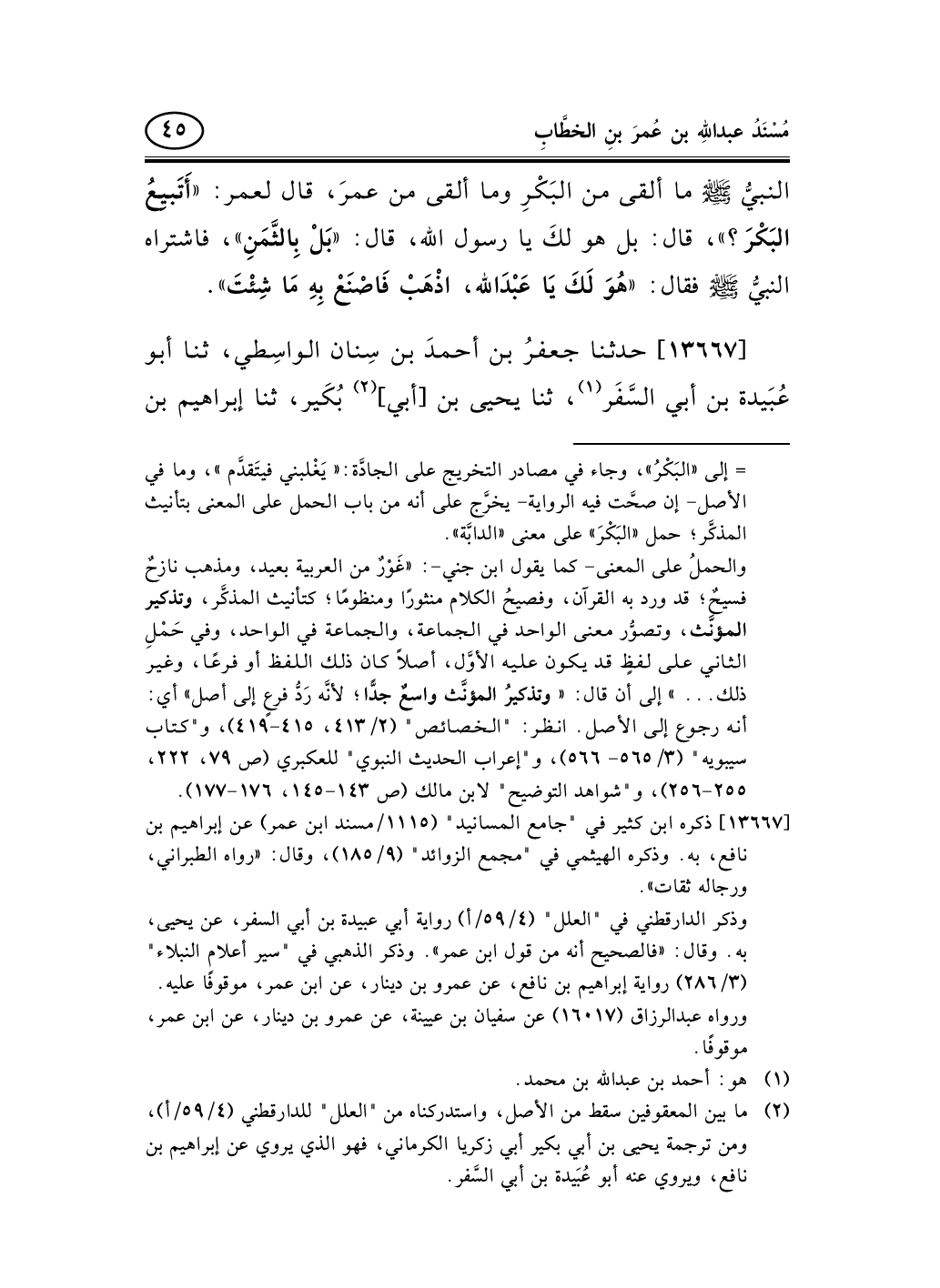 13667 - حدثنا جعفرُ بن أحمدَ بن سِنان الواسِطي، ثنا أبو عُبَيدة بن أبي السَّفَر (¬1) ، ثنا يحيى بن [أبي] (¬2) بُكَير، ثنا إبراهيم بن -[46]- نافع، قال: سمعتُ عمرو بن دينار، يَذْكرُ عن عبد الله بن عمر، قال: كان رسولُ الله صلى الله عليه وسلم إذا أتاه رجلٌ يقول: عليَّ رقبةٌ من وَلَدِ إسماعيلَ، يقول: «عَلَيْكَ بِحَسَنٍ وحُسَيْنٍ» .