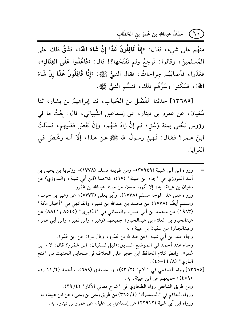 [13685] رواه الشافعي في "الأم" (2/53) ، والحميدي (689) ، وأحمد (2/11 رقم 4590) ؛ جميعهم عن ابن عيينة، به.