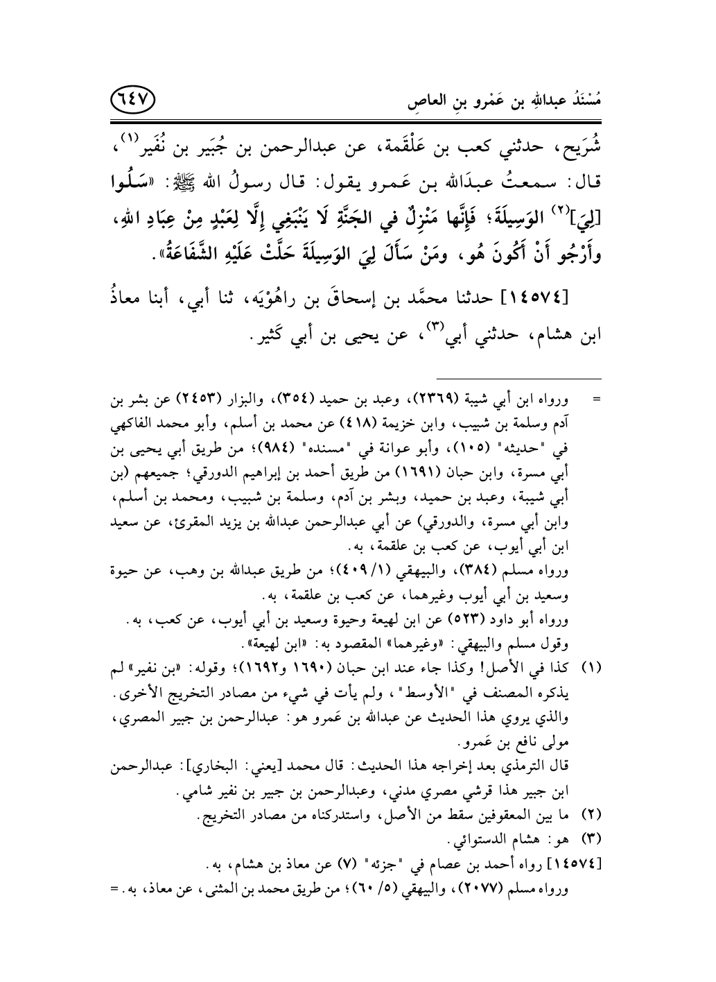 14574 - حدثنا محمَّد بن إسحاقَ بن راهُوْيَه، ثنا أبي، أبنا معاذُ ابن هشام، حدثني أبي (¬1) ، عن يحيى بن أبي كَثير. -[648]-