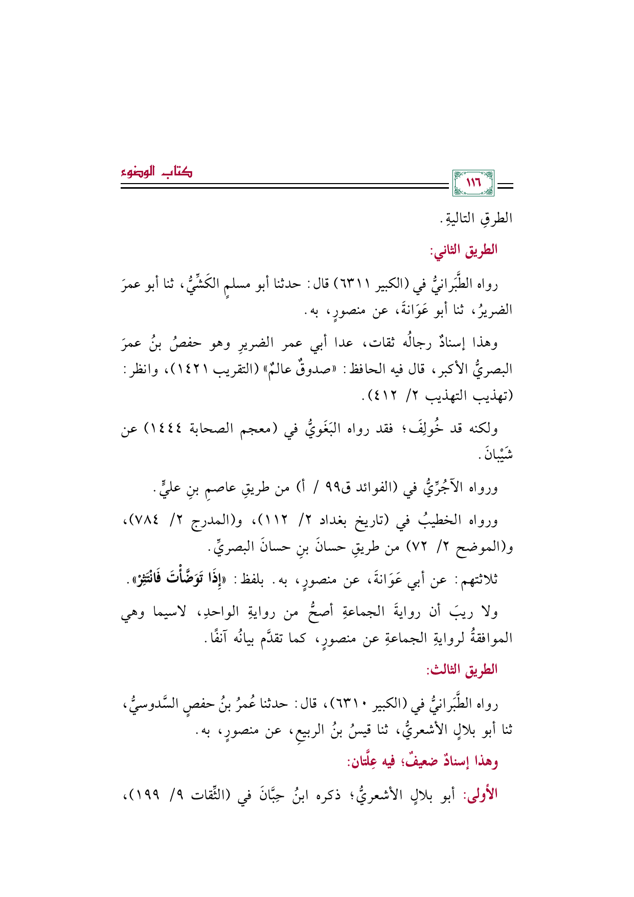 رواه الطَّبَرانيُّ في (الكبير ٦٣١١) قال: حدثنا أبو مسلمٍ الكَشِّيُّ، ثنا أبو عمرَ الضريرُ، ثنا أبو عَوَانةَ، عن منصورٍ، به.
