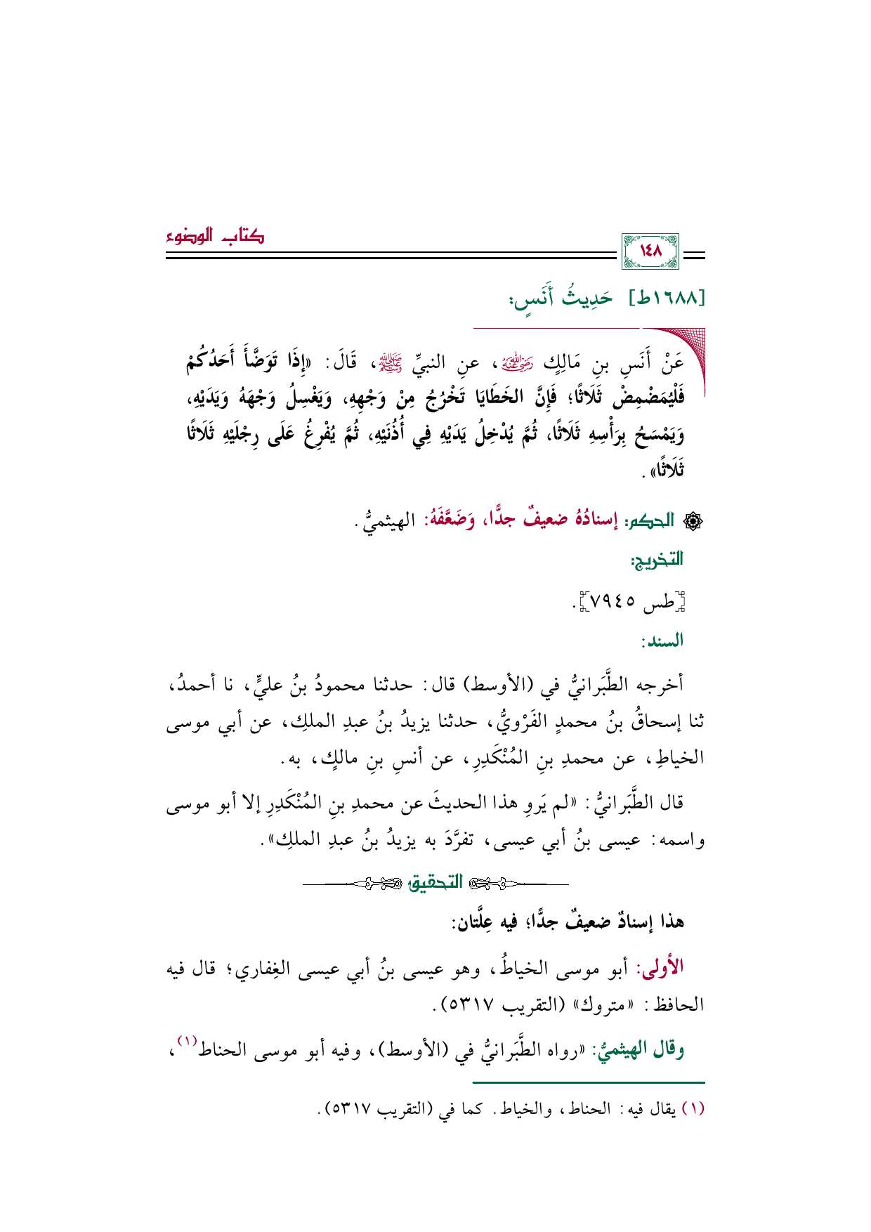 وقال الهيثميُّ: "رواه الطَّبَرانيُّ في (الأوسط)، وفيه أبو موسى الحناط (¬١)،