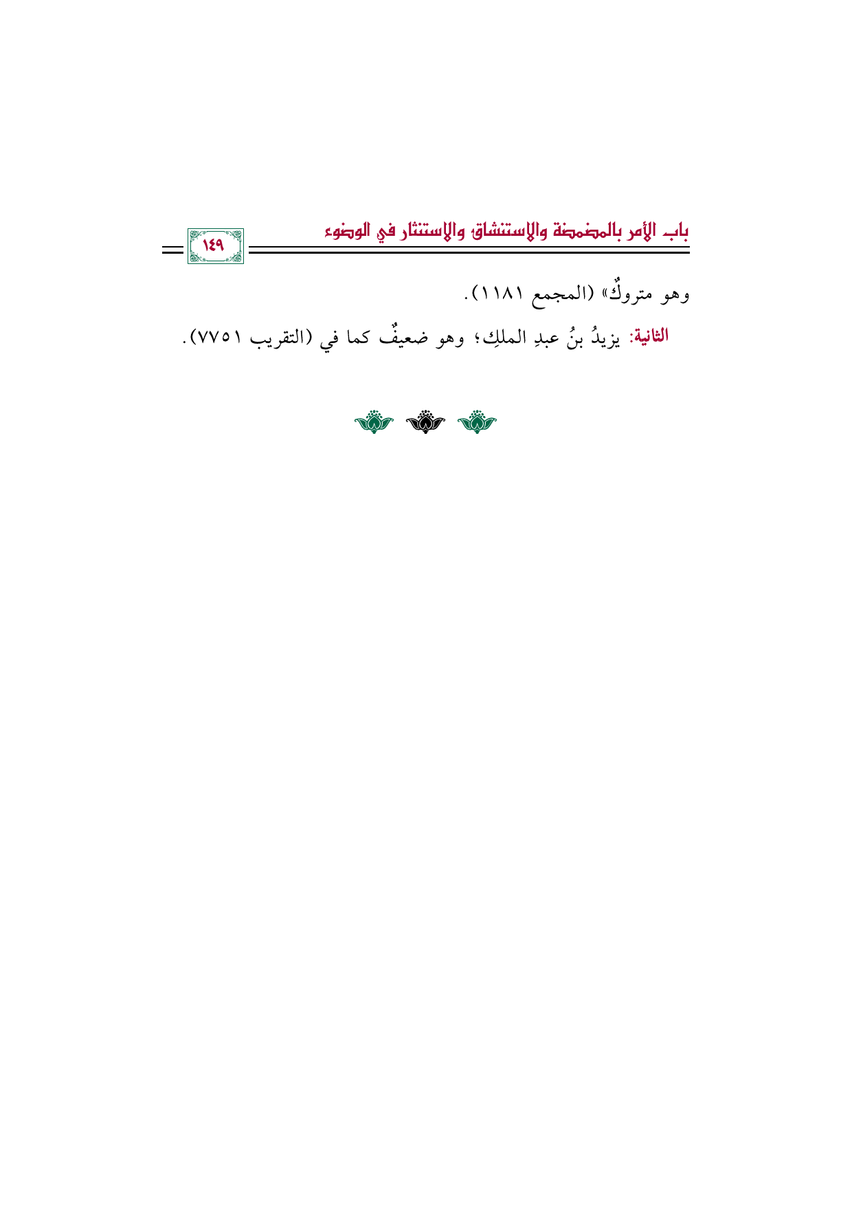 الثانية: يزيدُ بنُ عبدِ الملكِ؛ وهو ضعيفٌ كما في (التقريب ٧٧٥١).
