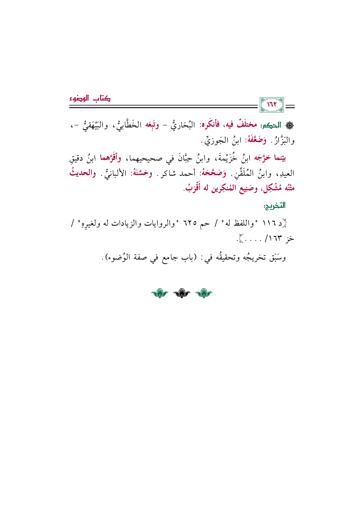 وسَبَق تخريجُه وتحقيقُه في: (باب جامع في صفة الوُضوء).