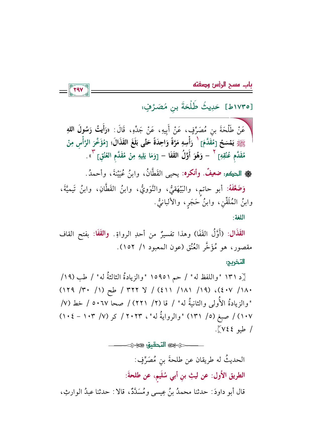 القَذَال: (أَوَّلُ القَفَا) وهذا تفسير من أحد الرواة. والقَفَا: بفتح القاف مقصور، هو مُؤَخَّر العُنُق (عون المعبود ١/ ١٥٢).