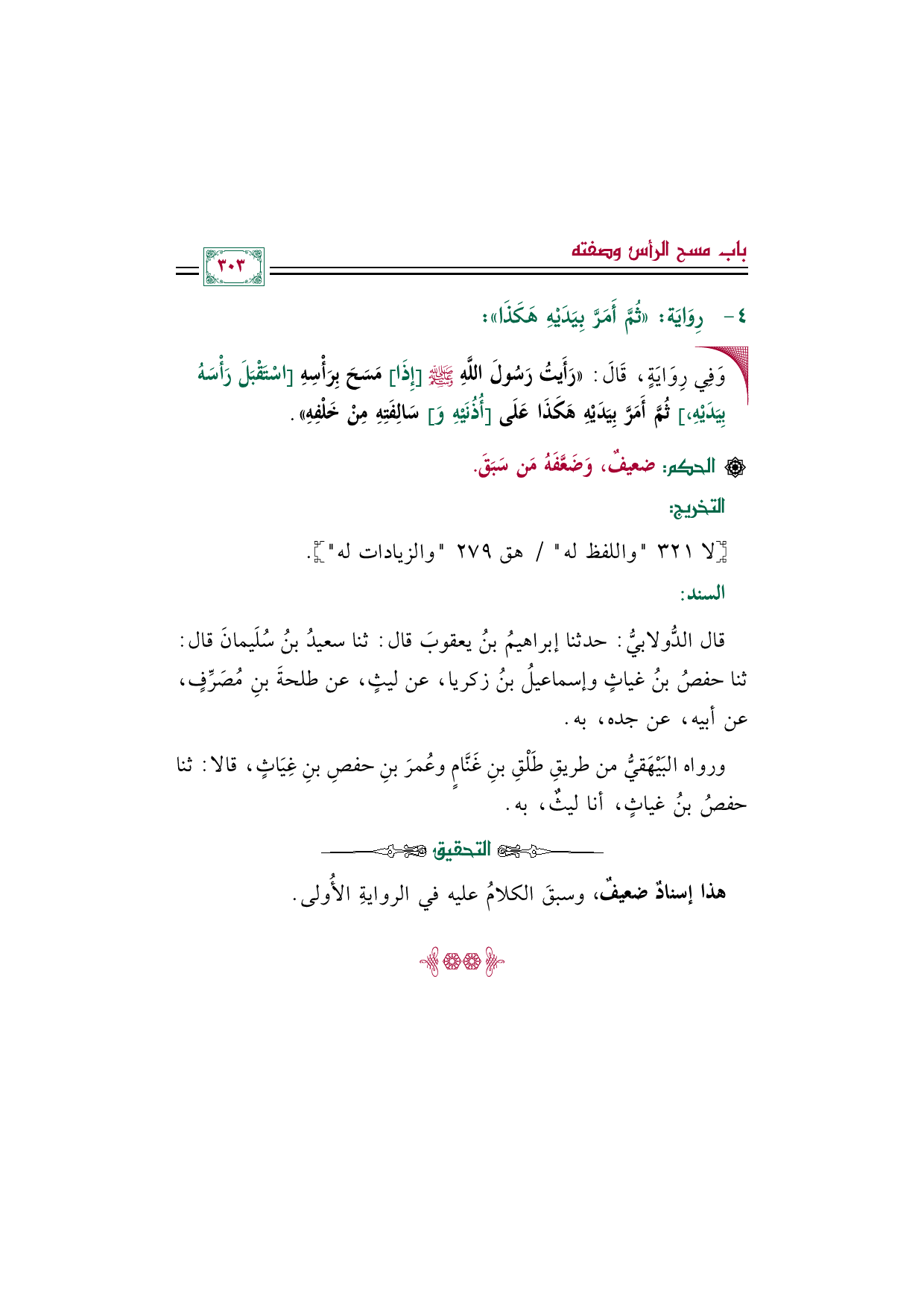 ورواه (البَيْهَقيّ) من طريقِ طَلْق بن غَنَّامٍ وعُمرَ بنِ حفصِ بن غِيَاثٍ، قالا: ثنا حفص بن غياث، أنا ليث، به.