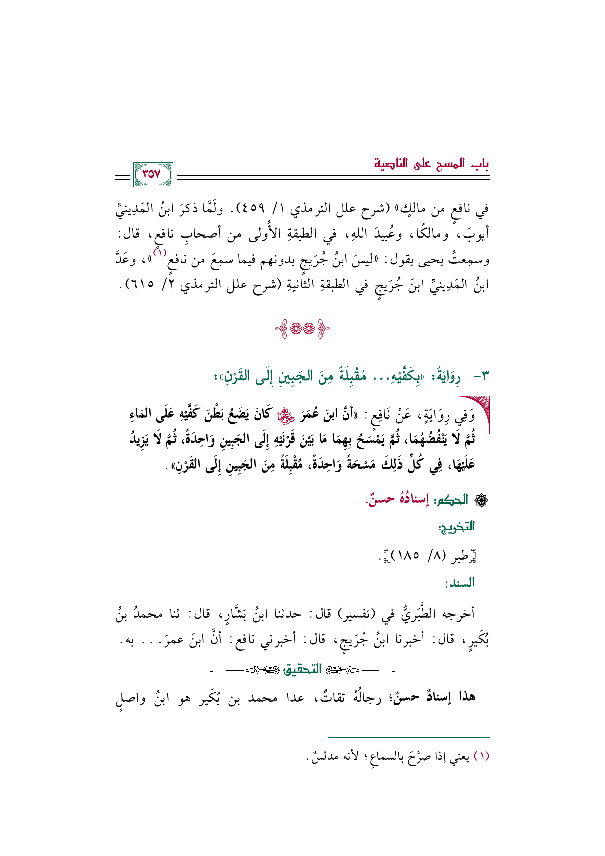 في نافع من مالك" (شرح علل التِّرْمِذيّ ١/ ٤٥٩). ولَمَّا ذكر ابن المَدِينيِّ أيوبَ ومالكًا وعُبيد الله في الطبقة الأولى من أصحاب نافع، قال: وسمِعتُ يحيى يقول: "ليس ابن جُرَيجٍ بدونهم فيما سمِع من نافع (¬١) "، وعَدَّ ابنُ المَدِينيِّ ابنَ جُرَيجٍ في الطبقة الثانية (شرح علل التِّرْمِذي ٢/ ٦١٥).
