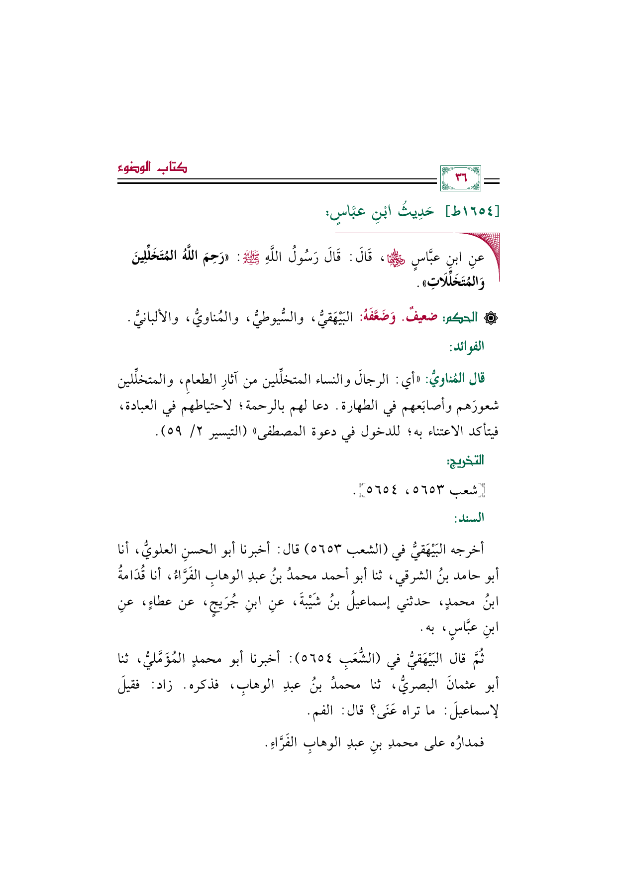 ثُمَّ قال البَيْهَقيُّ في (الشُّعَبِ ٥٦٥٤): أخبرنا أبو محمدٍ المُؤَمَّليُّ، ثنا أبو عثمانَ البصريُّ، ثنا محمدُ بنُ عبدِ الوهابِ، فذكره. زاد: فقيلَ لإسماعيلَ: ما تراه عَنَى؟ قال: الفم.