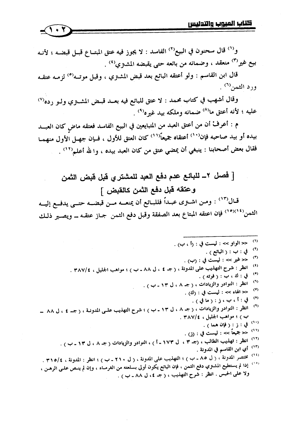 [فصل 2 - للبائع عدم دفع العبد للمشتري قبل قبض الثمن وعتقه قبل دفع الثمن كالقبض]