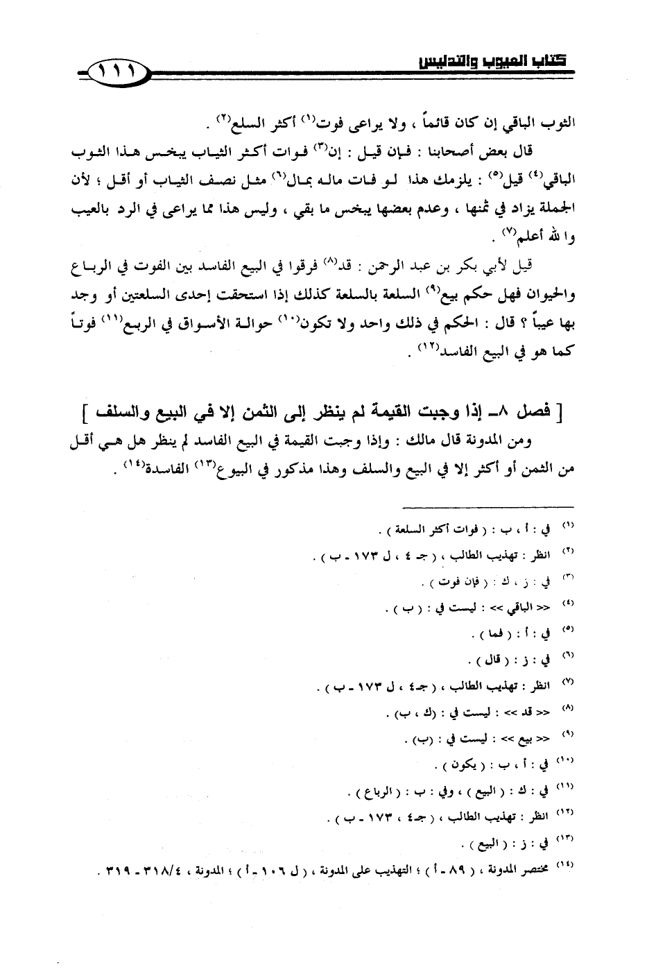 [فصل 8 - إذا وجبت القيمة لم ينظر إلى الثمن إلا في البيع والسلف]