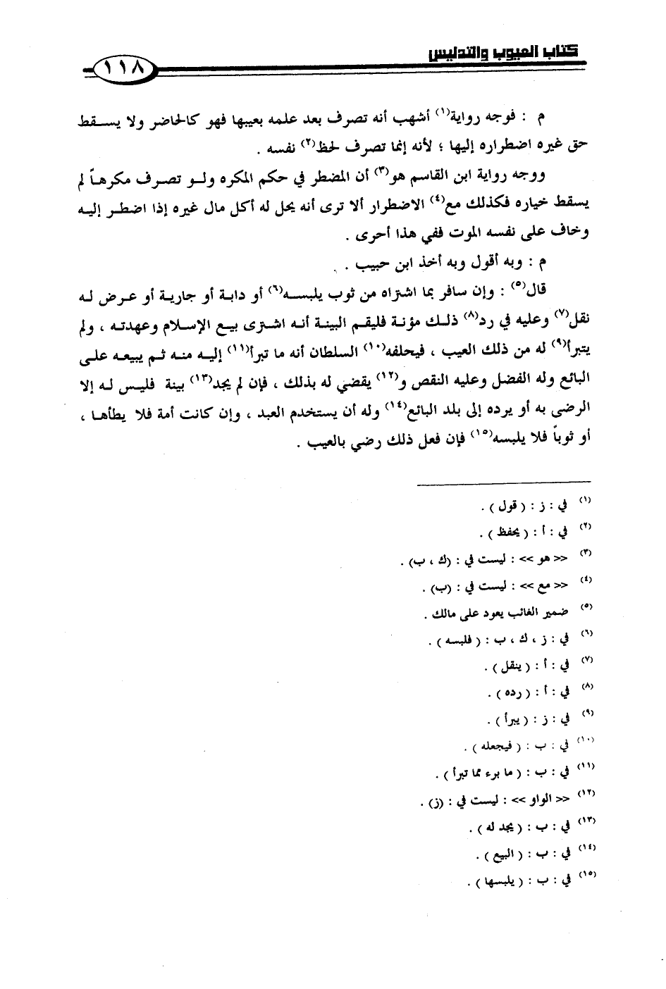 م: فوجه رواية أشهب أنه تصرف بعد علمه بعيبها فهو كالحاضر ولا يسقط حق غيره اضطراره إليها؛ لأنه إنما تصرف لحظ نفسه.