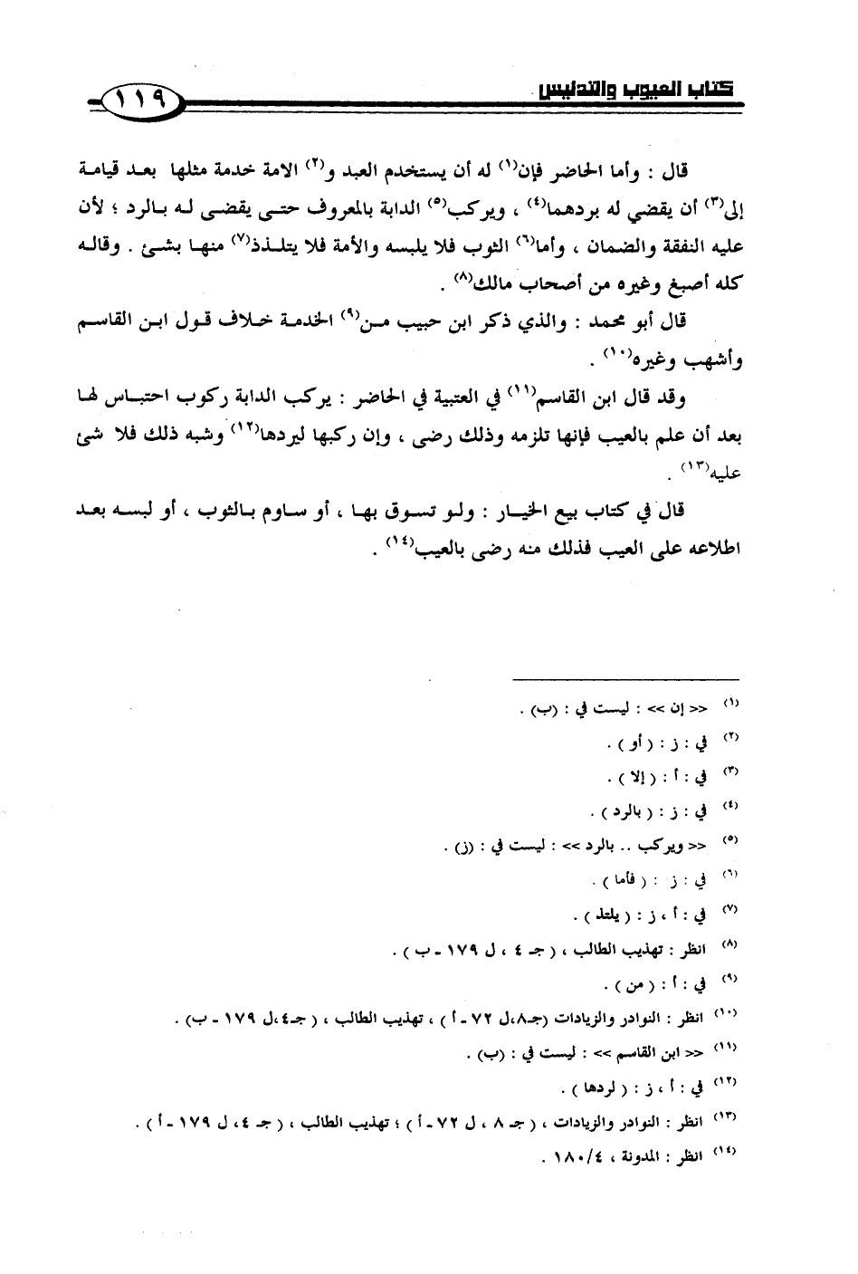 قال أبو محمد: والذي ذكر ابن حبيب من الخدمة خلاف قول ابن القاسم وأشهب وغيره.