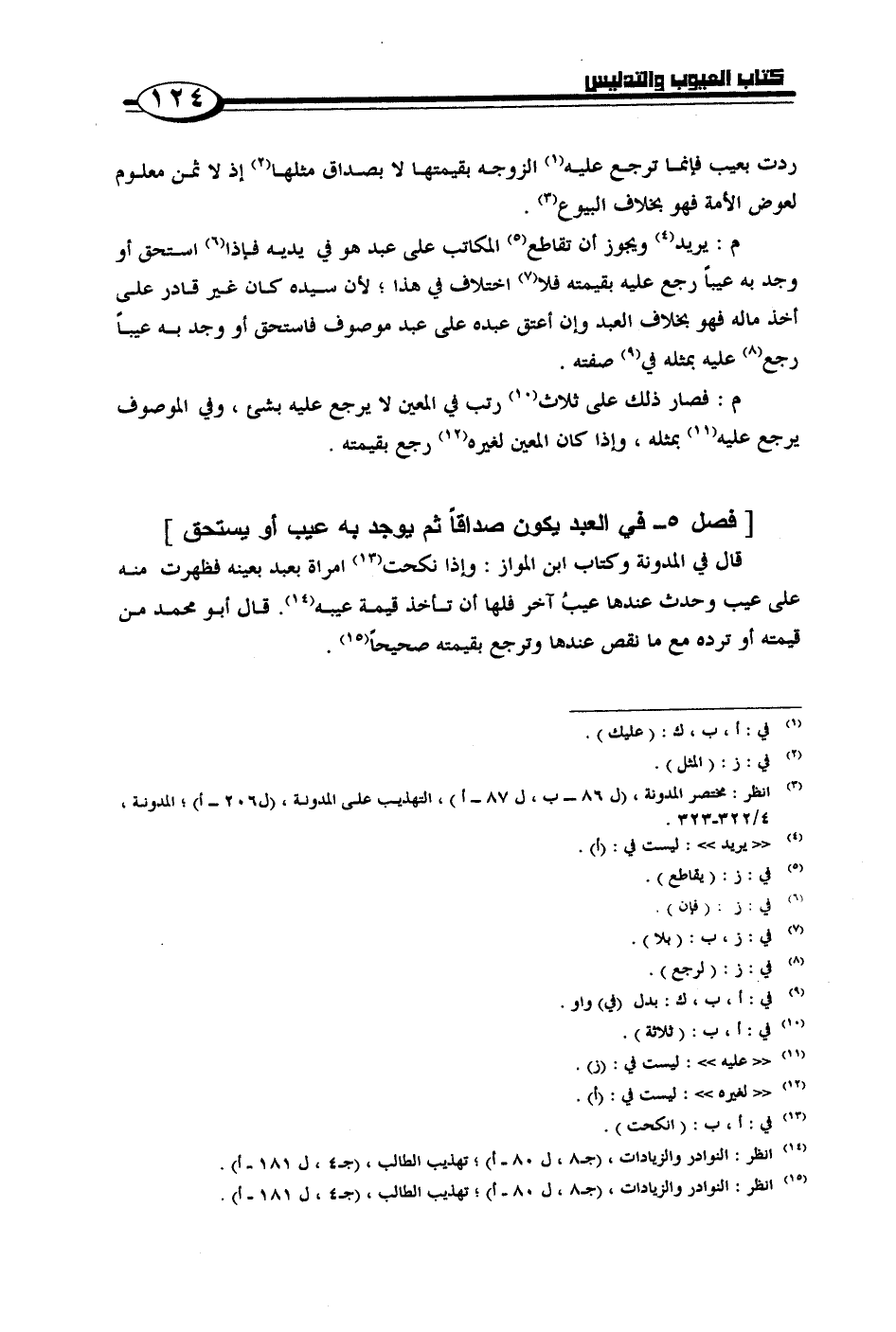 [فصل 5 - في العبد يكون صداقاً ثم يوجد به عيب أو يستحق]