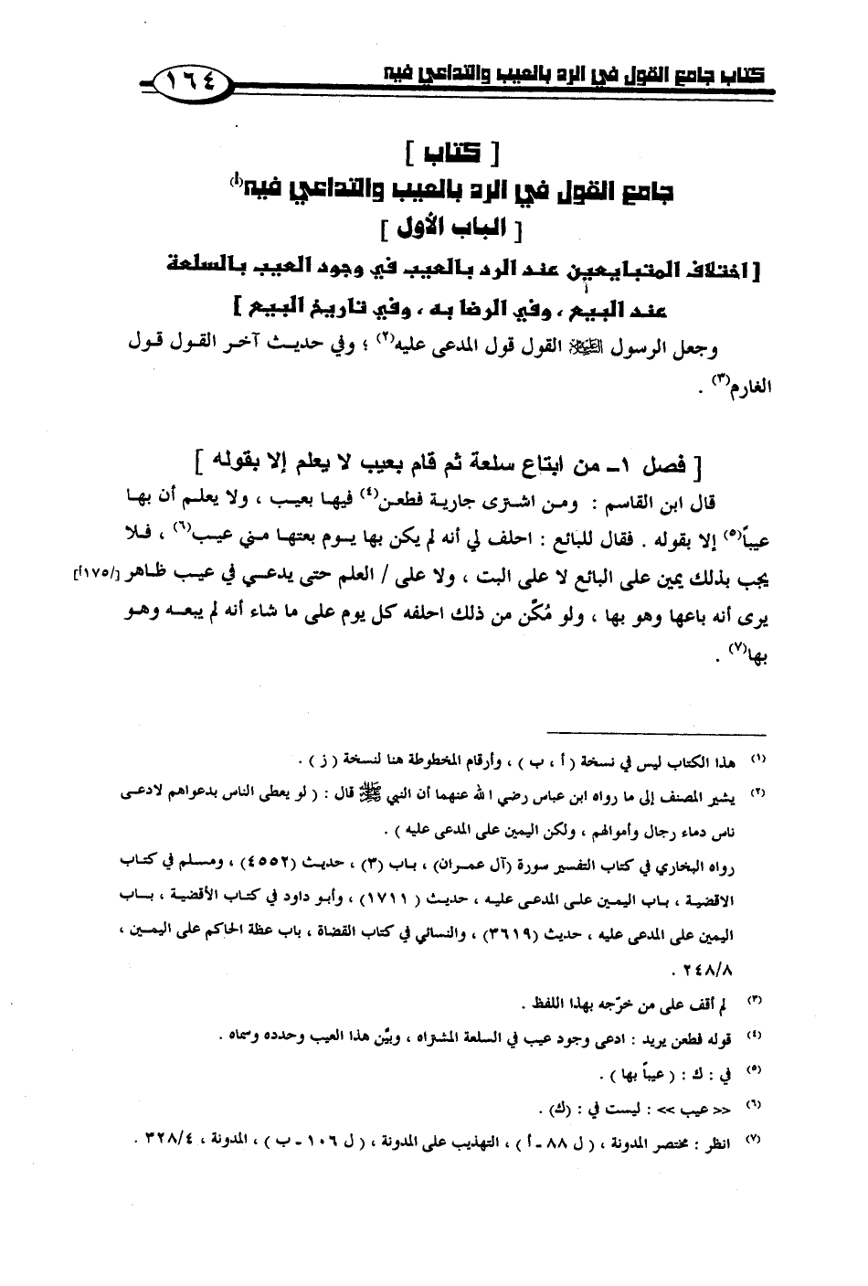 [فصل 1 - من ابتاع سلعة ثم قام بعيب لا يعلم إلا بقوله]