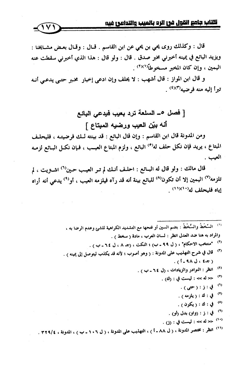 [فصل 5 - السلعة ترد بعيب فيدعي البائع أنه بين العيب ورضيه المبتاع]