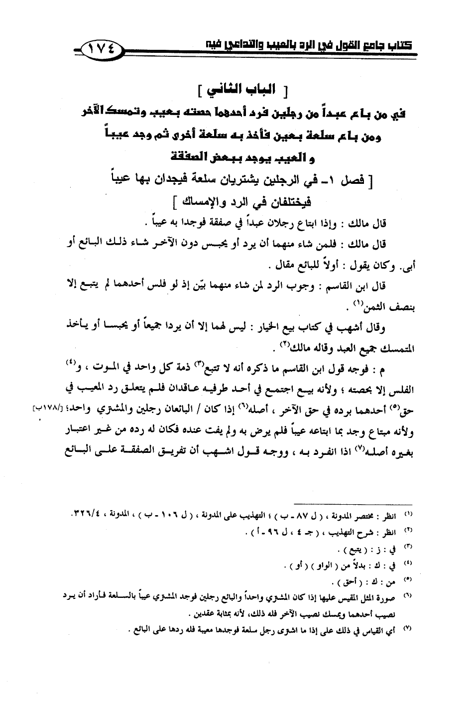 [فصل 1 - في الرجلين يشتريان سلعة فيجدان بها عيبًا فيختلفان في الرد والإمساك]