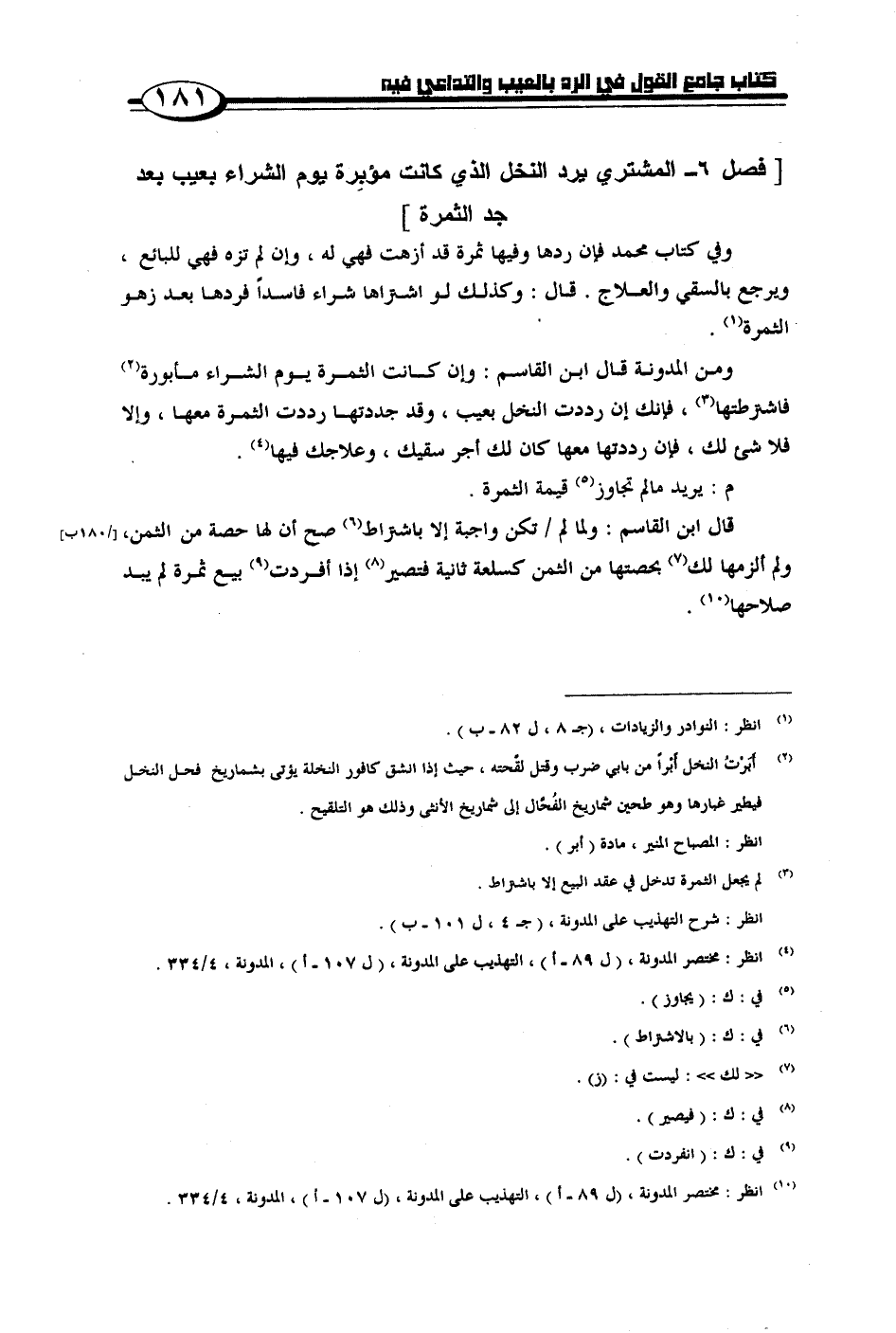 [فصل 6 - المشتري يرد النخل الذي كانت مؤبرة يوم الشراء بعيب بعد جد الثمرة]
