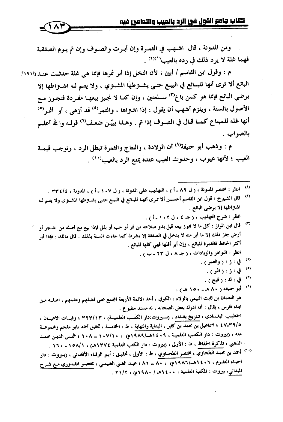 م: وذهب أبو حنيفة أن الولادة، والنتاج والثمرة تبطل الرد، وتوجب قيمة العيب؛ لأنها عيوب، وحدوث العيب عنده يمنع الرد بالعيب.