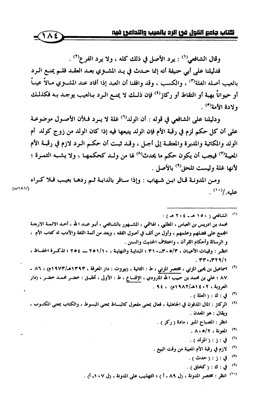 ودليلنا على الشافعي في قوله: أن الولد غلة لا يرد فلان الأصول موضوعة على أن كل حكم لزم في رقبة الأم فإن الولد يتبعها فيه إذا كان الولد من زوج كولد أم الولد والمكاتبة والمدبرة والمعتقة لإلي أجل، وقد ثبت أن حكم الرد لازم في رقبة الأم المعيبة فيجب أن يكون حكم ما يحدث لها من ولد كحكمها، ولا يشبه الثمرة؛ لأنها غلة وليست تلحق بالأصل.