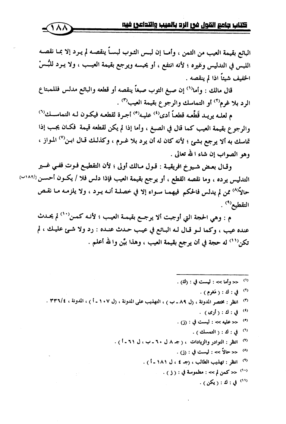 وقال بعض شيوخ أفريقية: قول مالك أولى؛ لأن التقطيع فوت ففي غير التدليس يرده، وما نقصه القطع، أو يرجع بقيمة العيب فإذا دلس فلا/ يكون أحسن حالاً ممن لم يدلس فالحكم فيهما سواء إلا في خصلة أنه يرد، ولا يلزمه ما نقص التقطيع.