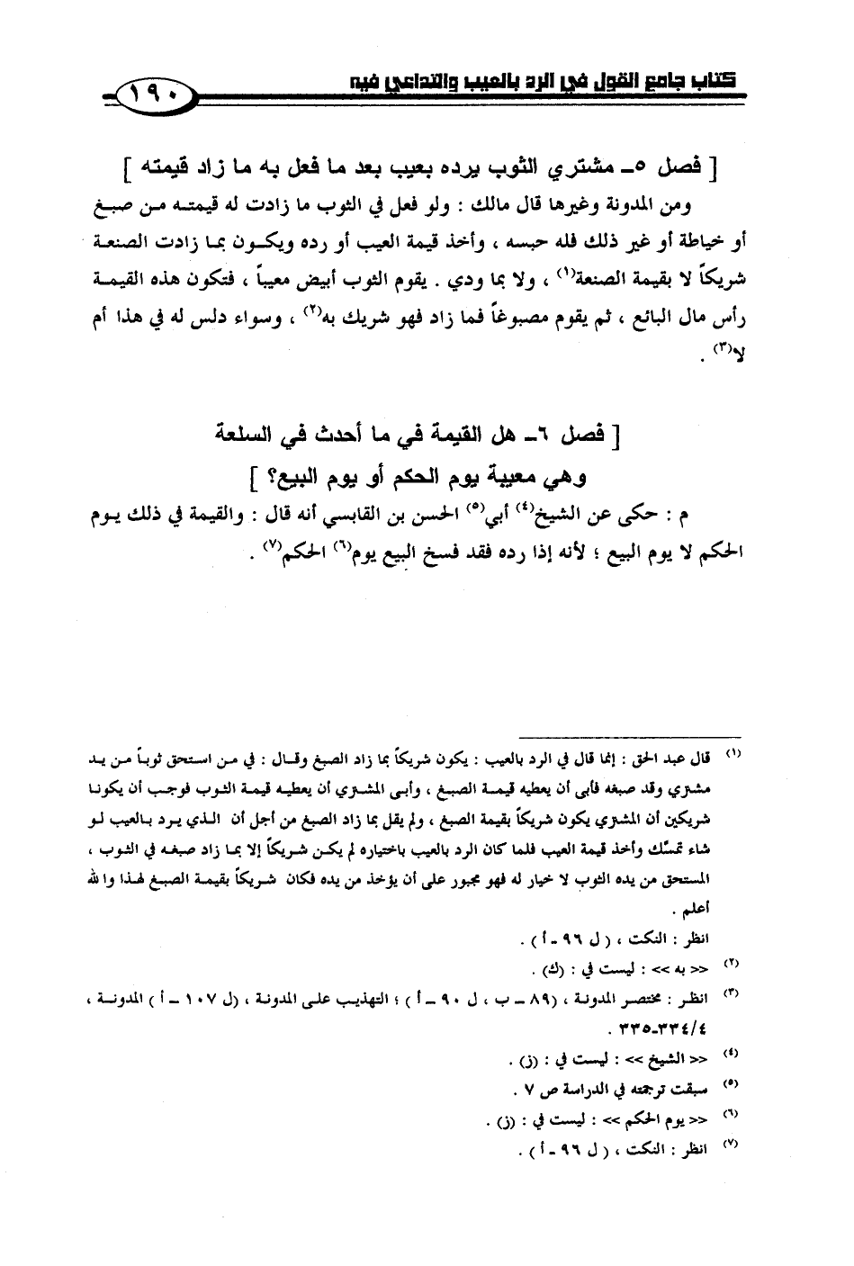 [فصل 5 - مشتري الثوب يرده بعيب بعدما فعل به ما زاد قيمته]