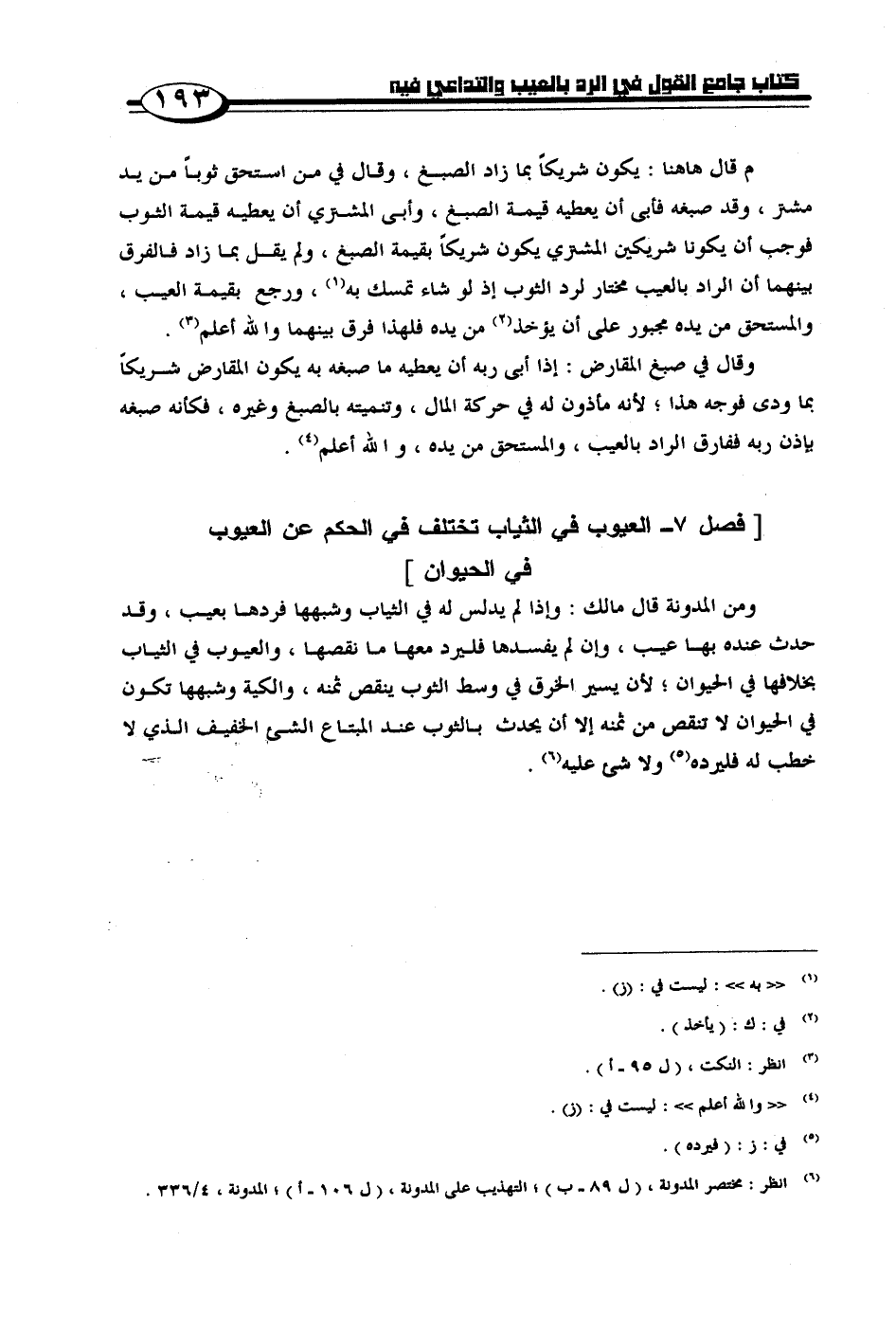 [فصل 7 - العيوب في الثياب تختلف في الحكم عن العيوب في الحيوان]