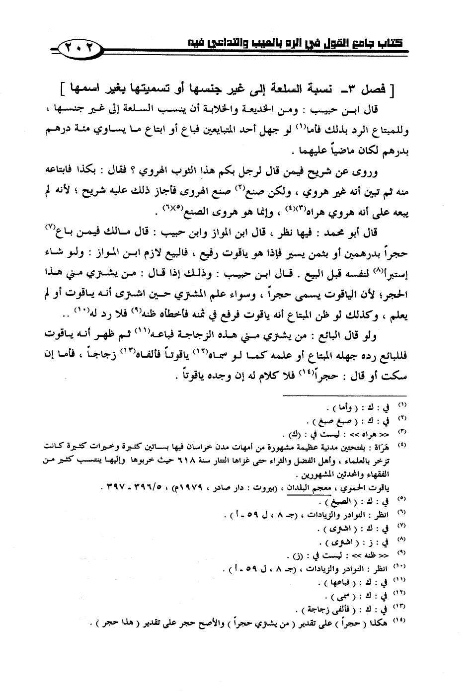 [فصل 3 - نسبة السلعة إلى غير جنسها أو تسميتها بغير اسمها]