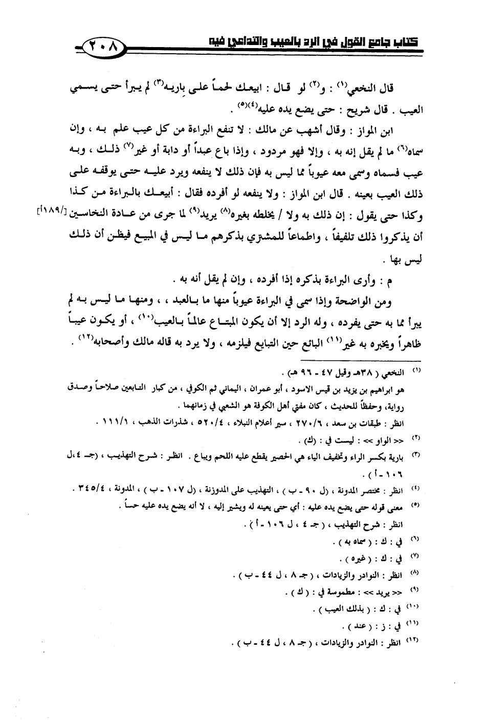 ابن المواز: وقال أشهب عن مالك: لا تنفع البراءة من كل عيب علم به، وإن سماه مالم يقل إنه به، وإلا فهو مردود، وإذا باع عبداً أو دابة أو غير ذلك، وبه عيب فسماه وسمى معه عيوباً مما ليس به فإن ذلك لا ينفعه ويرد عليه حتى يوقفه على ذلك العيب بعينه. قال ابن المواز: ولا ينفعه لو أفرده فقال: أبيعك بالبراءة من كذا وكذا حتى يقول: إن ذلك به ولا/ يخلطه بغيره يريد لما جرى من عادة النخاسين أن يذكروا ذلك تلفيفاً، وأطماعاً للمشتري بذكرهم ما ليس في المبيع فيظن أن ذلك ليس بها.