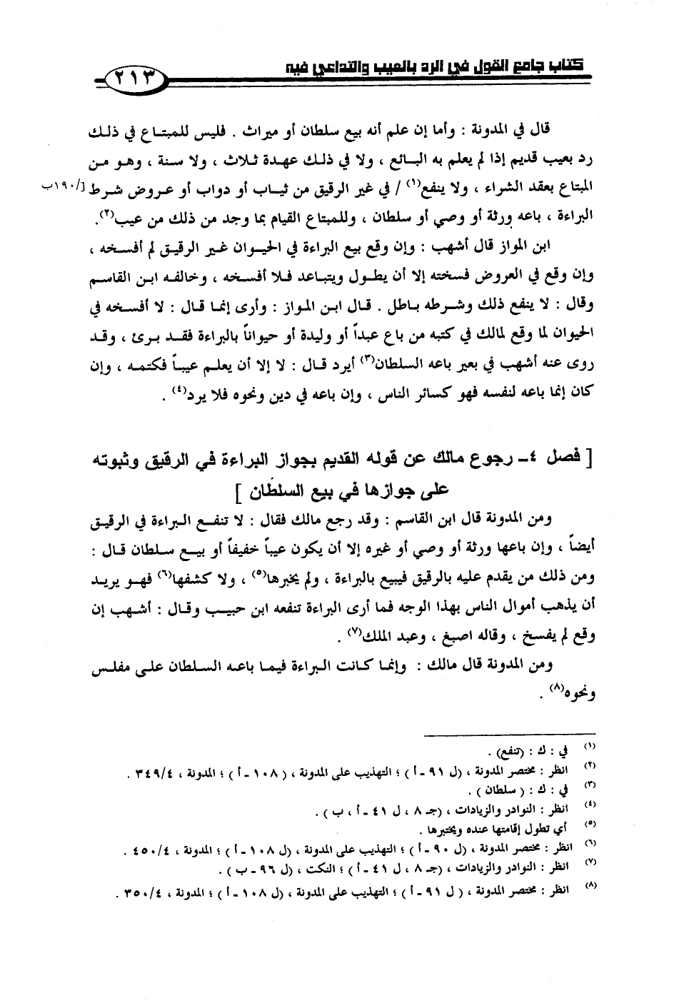 [فصل 4 - رجوع مالك عن قوله بجواز البراءة في الرقيق وثبوته