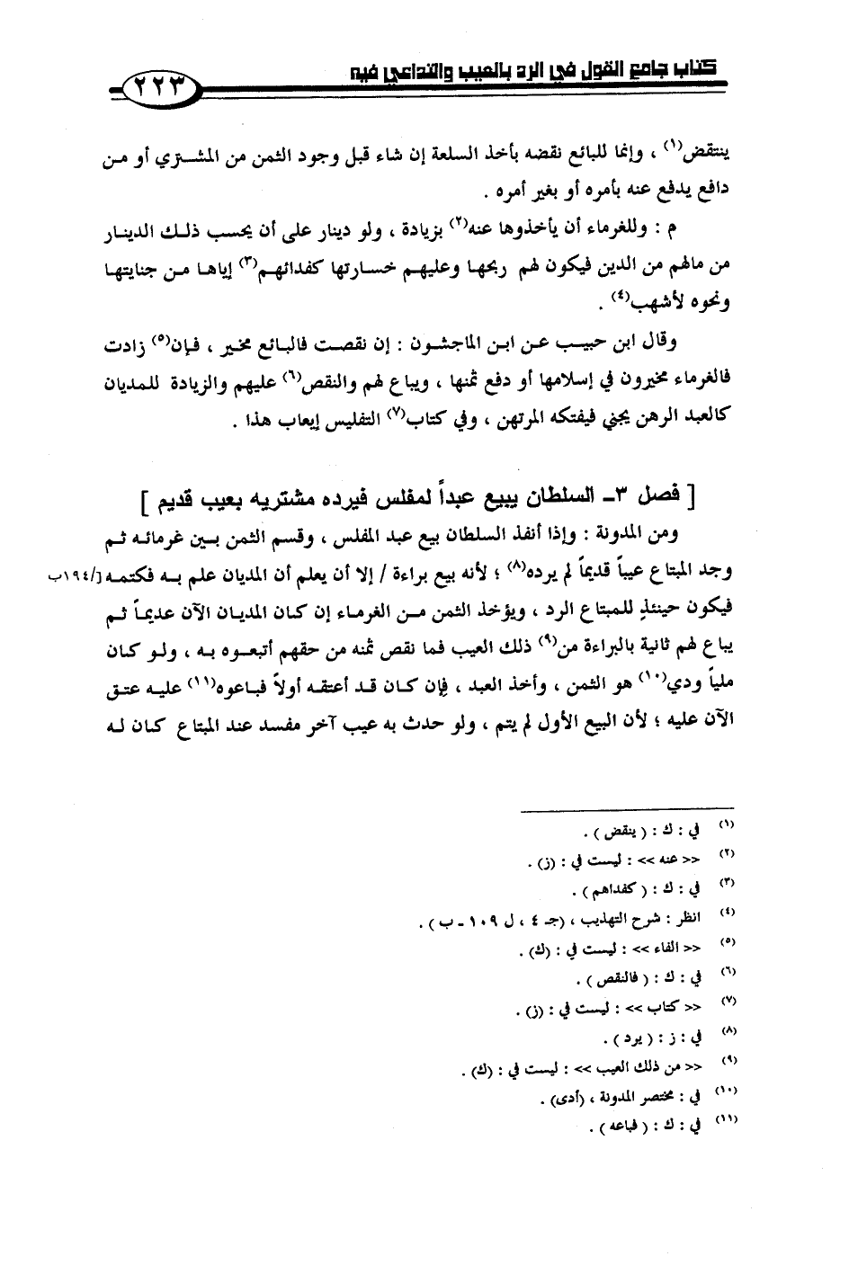 [فصل 3 - السلطان يبيع عبداً لمفلس فيرده مشتريه بعيب قديم]