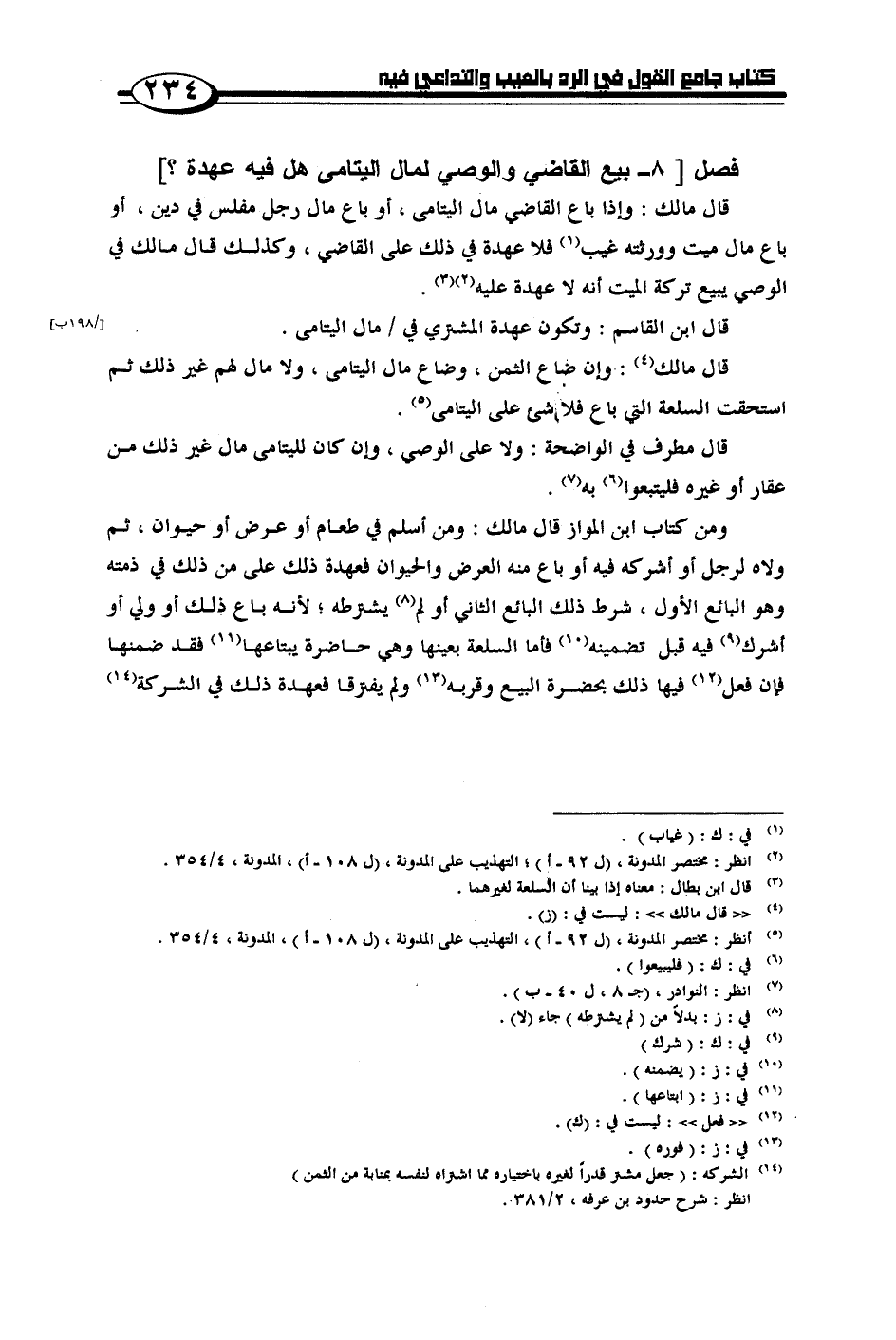 فصل [8 - بيع القاضي والوصي لمال اليتامى هل فيه عهدة؟]