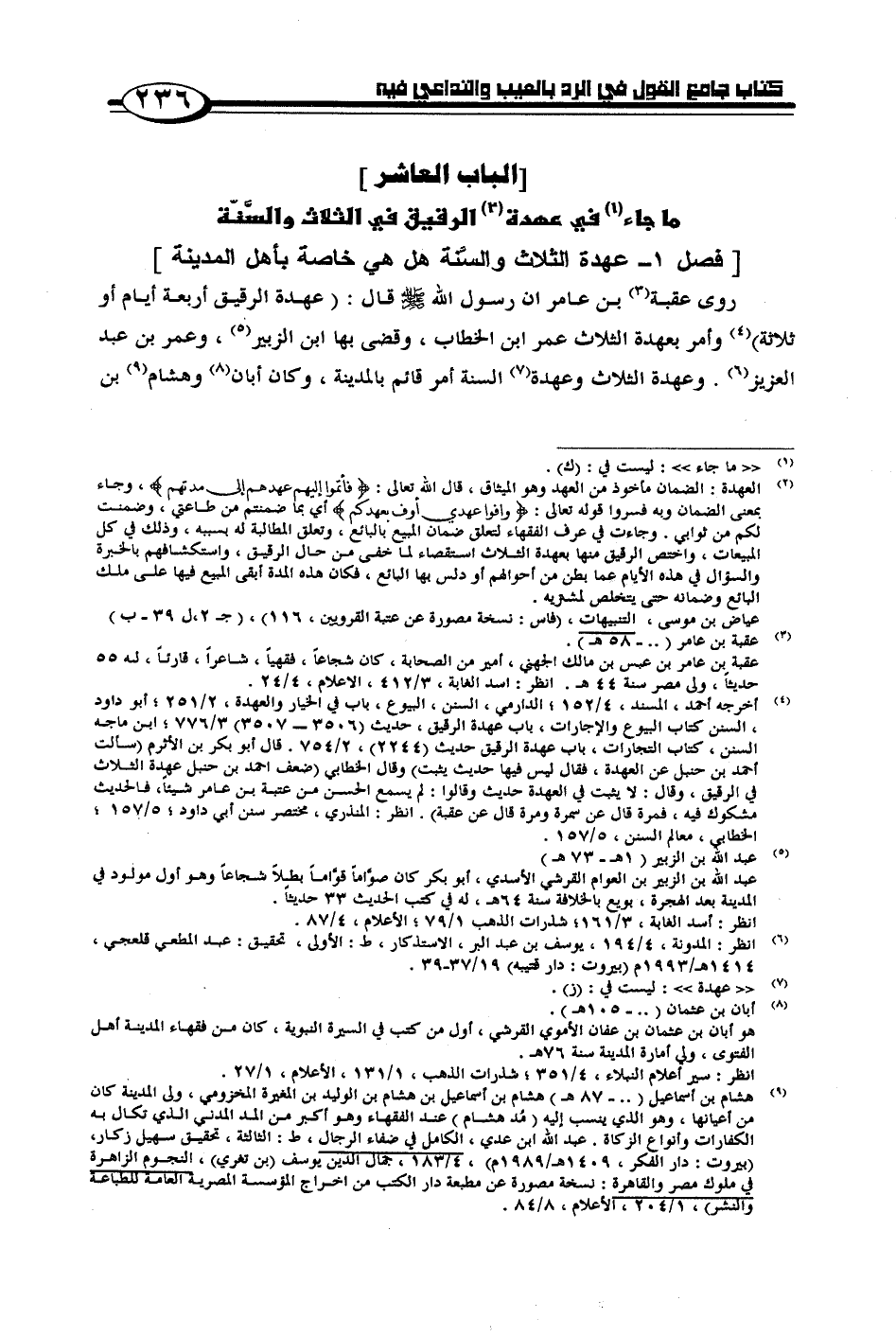 ما جاء في عهدة الرقيق في الثلاث والسنة