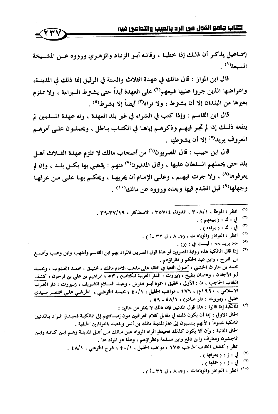 قال ابن حبيب: قال المصريون من أصحاب مالك لا تلزم عهدة الثلاث أهل بلد حتى يحملهم السلطان عليها، وقال المدنيون منهم: يقضي بها بكل بلد، وإن لم يعرفوها، ولا جرت فيهم، وعلى الإمام أن يجريها، ويحكم بها على من عرفها وجهلها قبل التقدم فيها وبعده ورووه عن مالك.