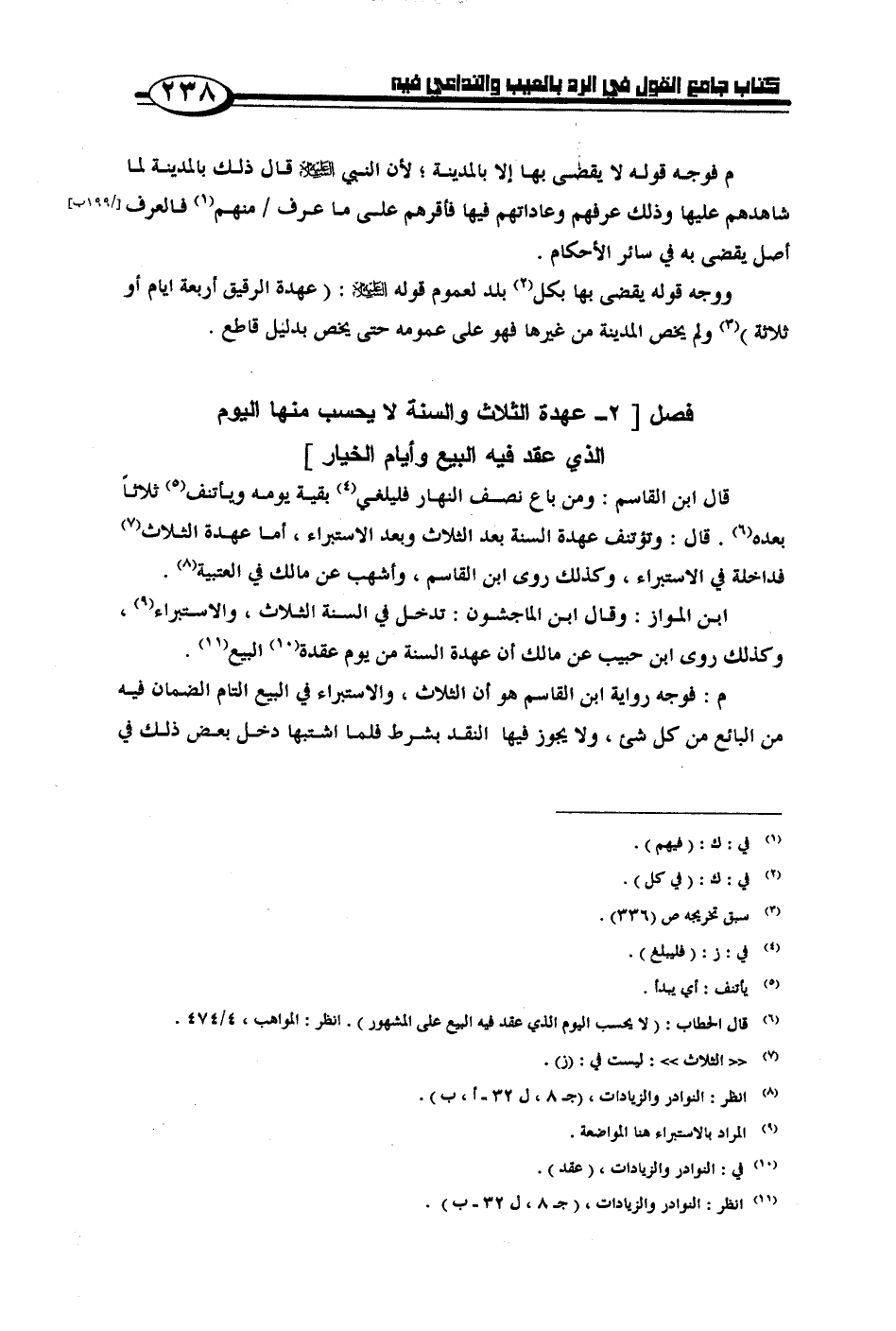ابن المواز: وقال ابن الماجشون: تدخل في السنة الثلاث، والاستبراء، وكذلك روى ابن حبيب عن مالك أن عهدة السنة من يوم عقدة البيع.