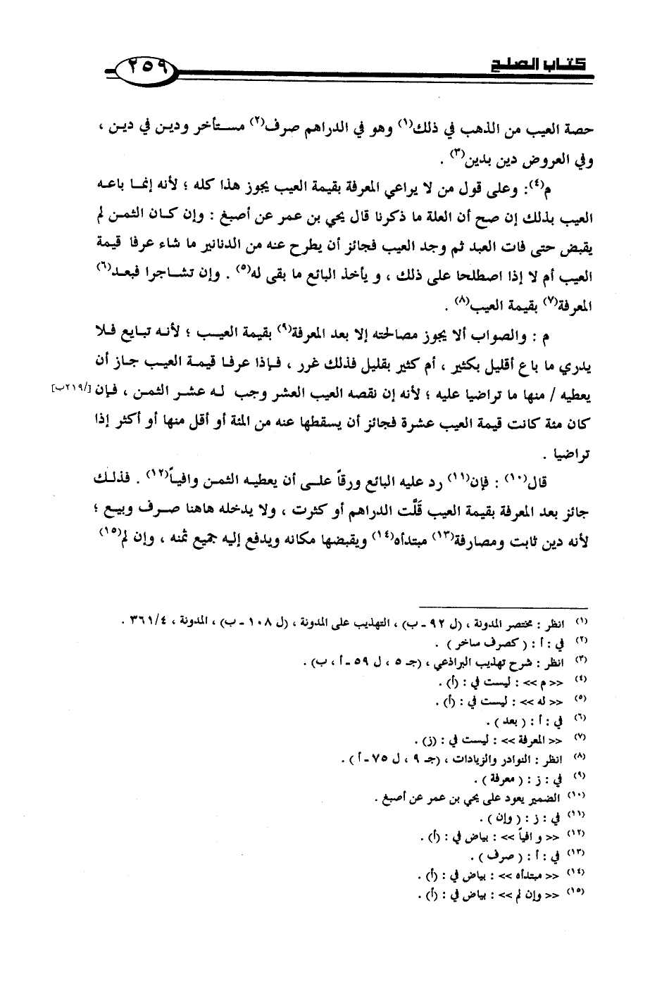 م: والصواب ألا يجوز مصالحته إلا بعد المعرفة بقيمة العيب؛ لأنه تبايع فلا يدري ما باع أقليل بكثير، أم كثير بقليل فذلك غرر، فغذا عرفا قيمة العيب جاز أن يعطيه/ منها ما تراضيا عليه؛ لأنه إن نقصه العيب العشر وجب له عشر الثمن، فإن كان مئة كانت قيمة العيب عشرة فجائز أن يسقطها عنه من المئة أو أقل منها أو أكثر إذا تراضيا.
