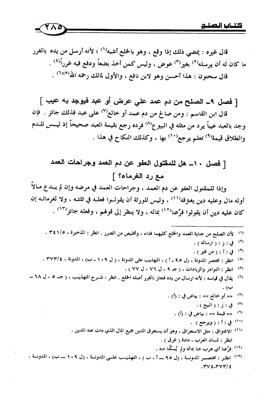 [فصل 9 - الصلح من دم عمد على عرض أو عبد فيوجد به عيب]