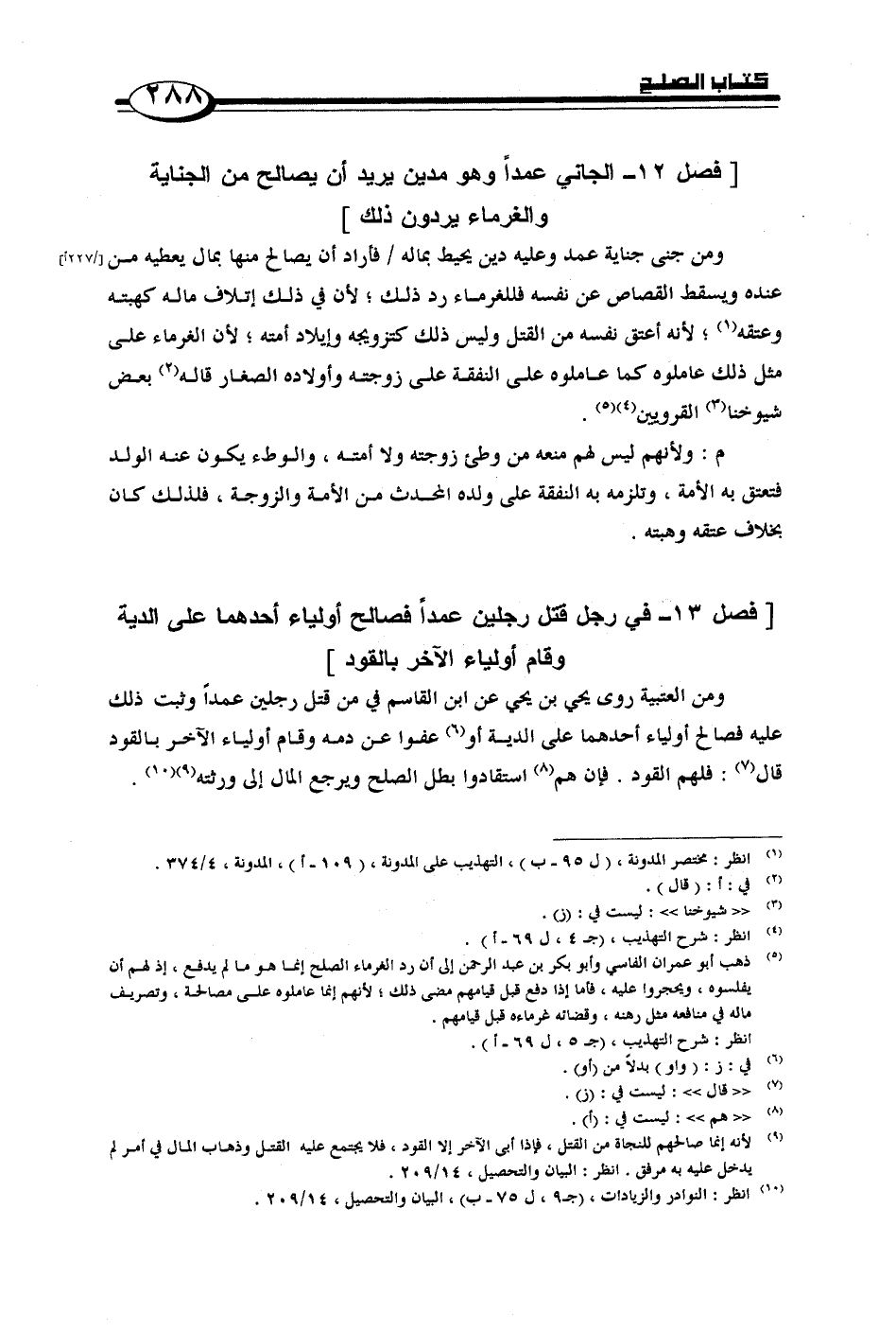 [فصل 12 - الجاني عمداً وهو مدين يريد أن يصالح من الجناية