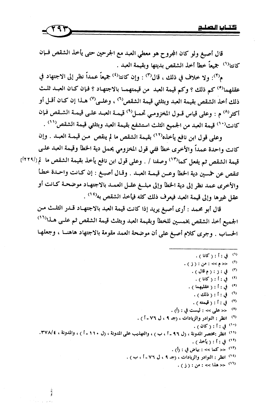 وعلى قول ابن نافع يأخذه بقيمة الشقص مالم ينقص من قيمة العبد. وإن كانت واحدة عمداً والأخرى خطأ ففي قول المخزومي يحمل دية الخطأ وقيمة العبد على قيمة الشقص ثم يفعل كما وصفنا/. وعلى قول ابن نافع يأخذ بقيمة الشقص مالم تنقص عن خمسين دية الخطأ. وعن قيمة العبد. وقال أصبغ: إن كانت واحدة خطأ والأخرى عمد نظر إلى دية الخطأ وإلى مبلغ عقل العمد بالاجتهاد موضحة كانت أو عقل غيرها وإلى قيمة العبد فيعرف ذلك كله فيأخذ الشقص به.