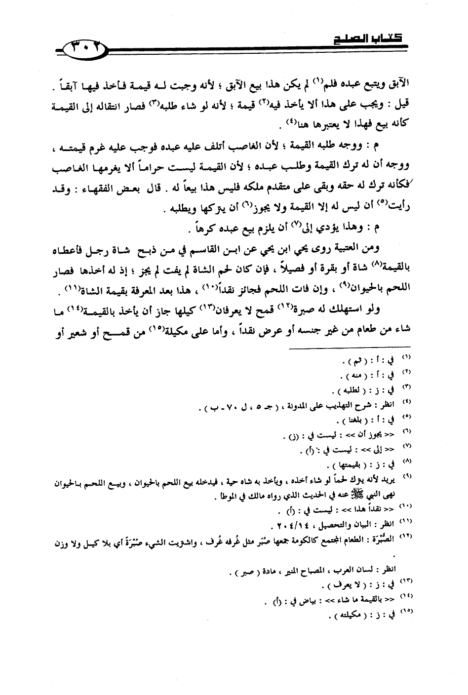 ومن العتبية روى يحي ابن يحي عن ابن القاسم في من ذبح شاة رجل فأعطاه بالقيمة شاة أو بقرة أو فصيلاً، فإن كان لحم الشاة لم يفت لم يجز؛ إذ له أخذها فصار اللحم بالحيوان، وإن فات اللحم فجائز نقداً، هذا بعد المعرفة بقيمة الشاة.