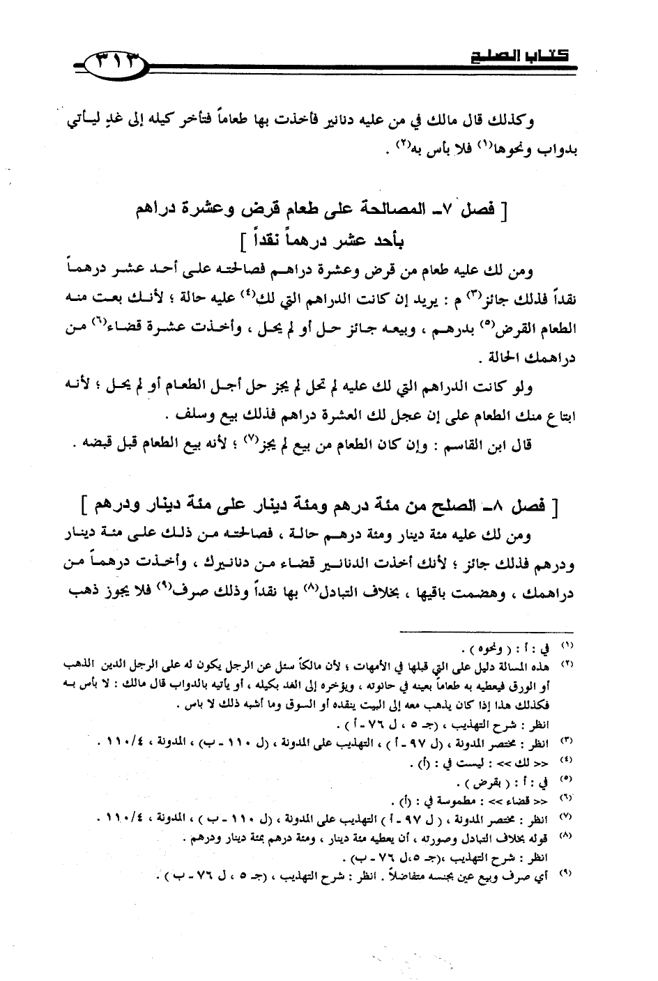 فصل] 7 - المصالحة على طعام قرض وعشرة دراهم بأحد عشر درهماً نقداً [