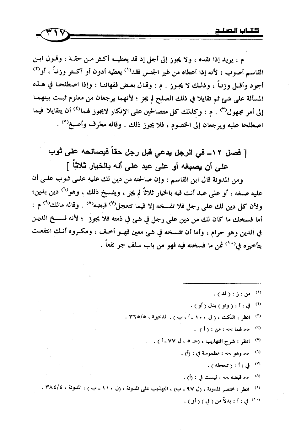 فصل] 12 - في الرجل يدعى قبل رجل حقاً فيصالحه على ثوب على أن يصبغه أو على عبد على أنه بالخيار ثلاثاً [