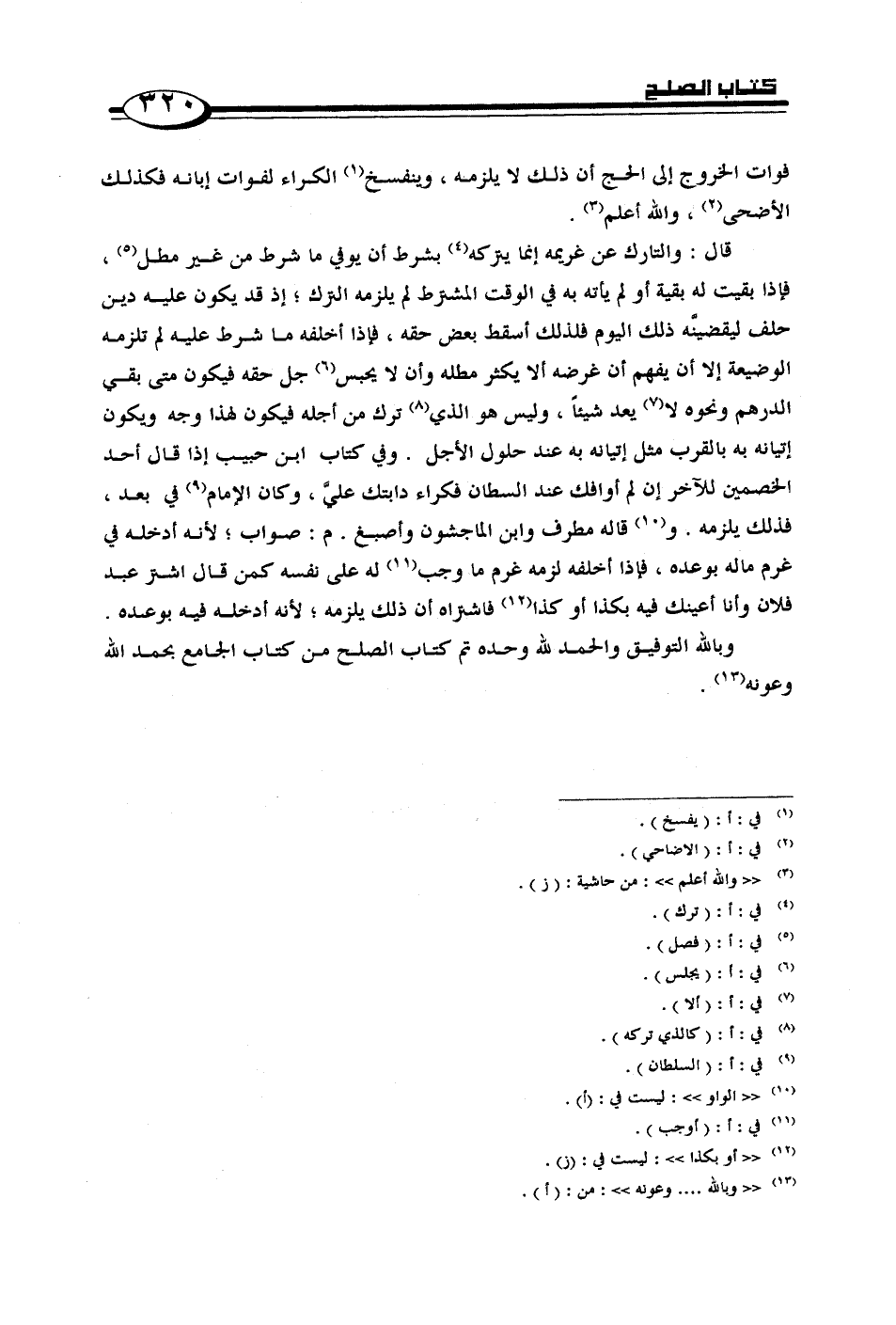 وبالله التوفيق والحمد لله وحده تم كتاب الصلح من كتاب الجامع بحمد الله وعونه.