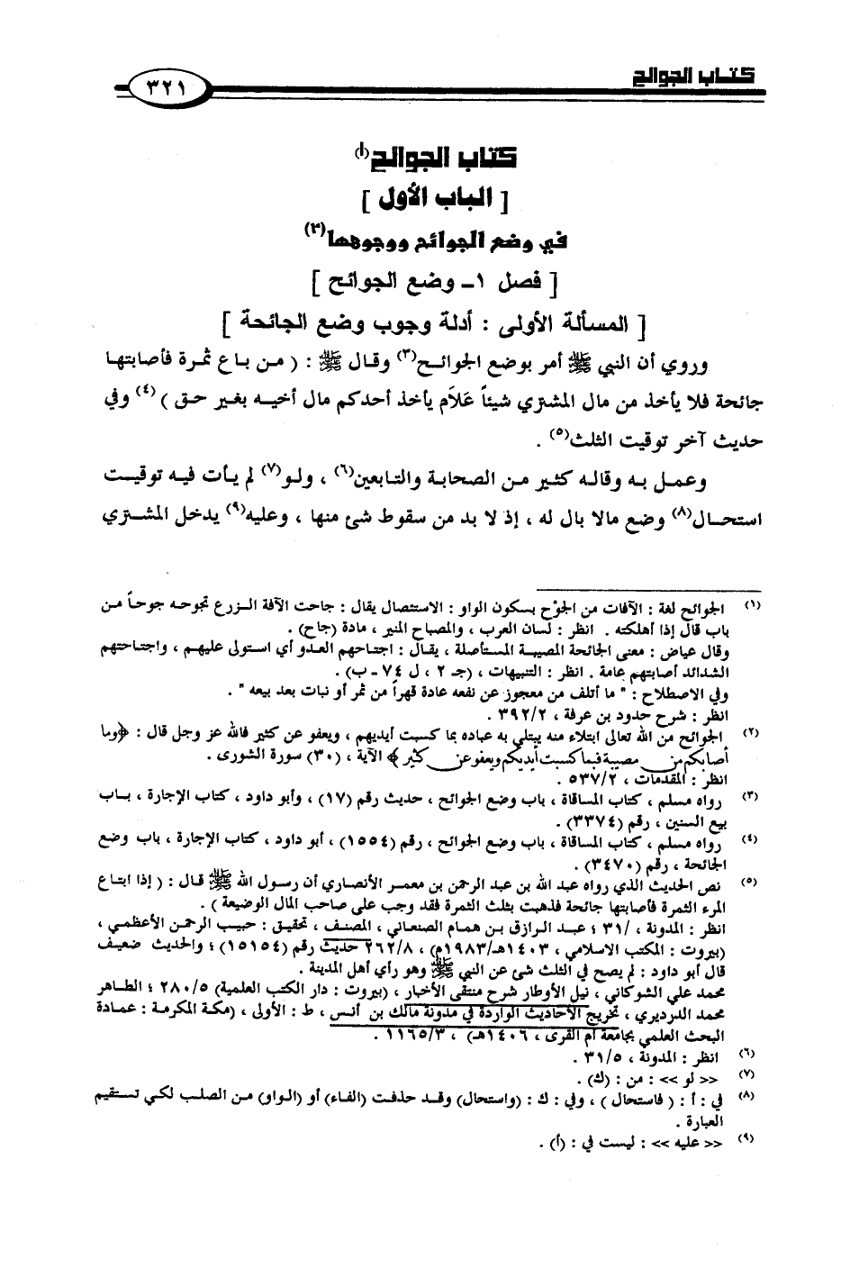 ] المسألة الأولى: أدلة وجوب وضع الجائحة [