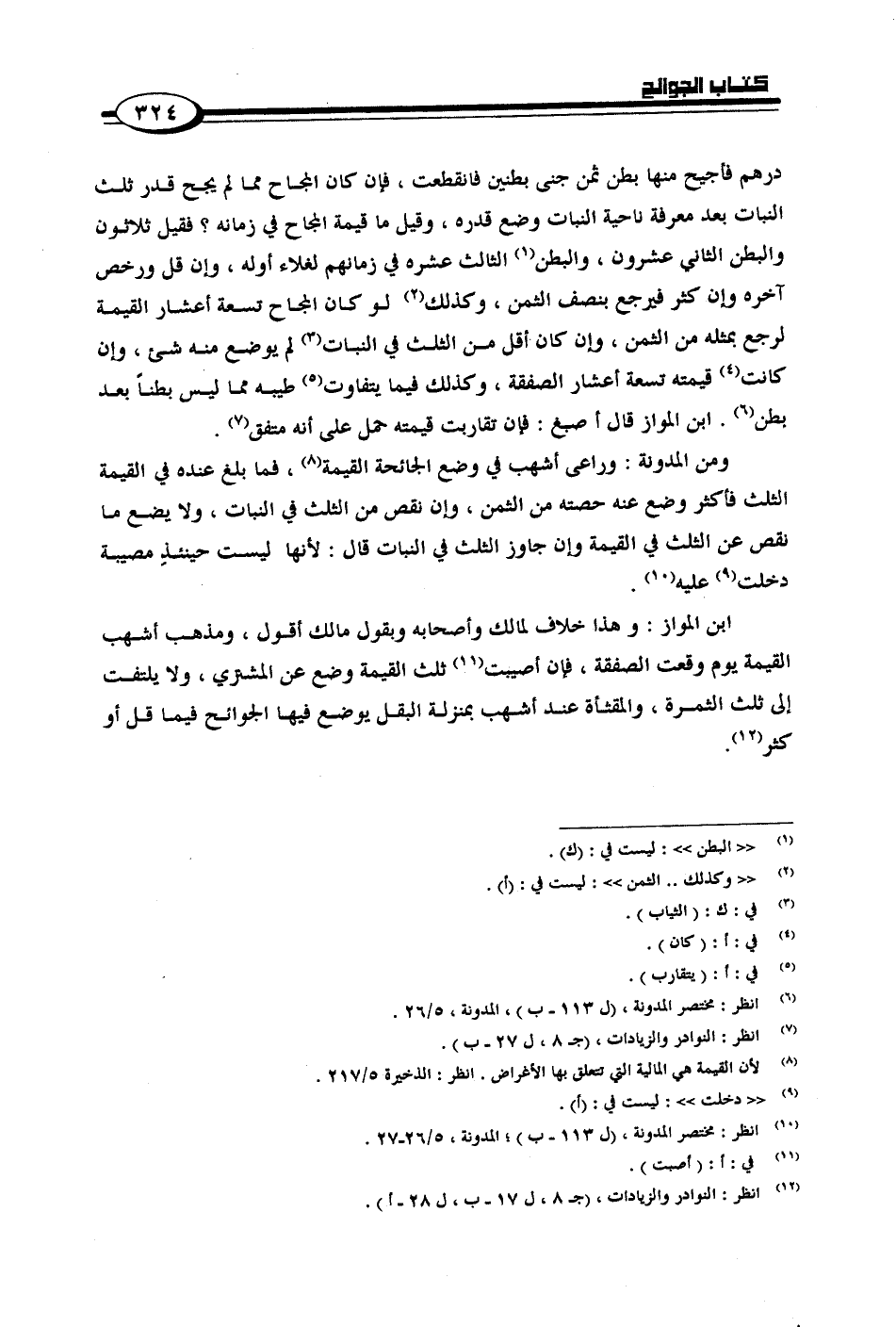 درهم فأجيح منها بطن ثمن جني بطنين فانقطعت، فإن كان المجاح مما لم يجح قدر ثلث النبات بعد معرفة ناحية النبات وضع قدره، وقيل ما قيمة المجاح في زمانه؟ فقيل ثلاثون والبطن الثاني عشرون، والبطن الثالث عشرة في زمانهم لغلاء أوله، وإن قل ورخص آخره وإن كثر فيرجع بنصف الثمن، وكذلك لو كان المجاح تسعة أعشار القيمة لرجع بمثله من الثمن، وإن كان أقل من الثلث في النبات لم يوضع منه شيء، وإن كانت قيمته تسعة أعشار الصفقة، وكذلك فيما يتفاوت طيبه مما ليس بطناً بعد بطن. ابن المواز قال أصبغ: فإن تقاربت قيمته حمل على أنه متفق.