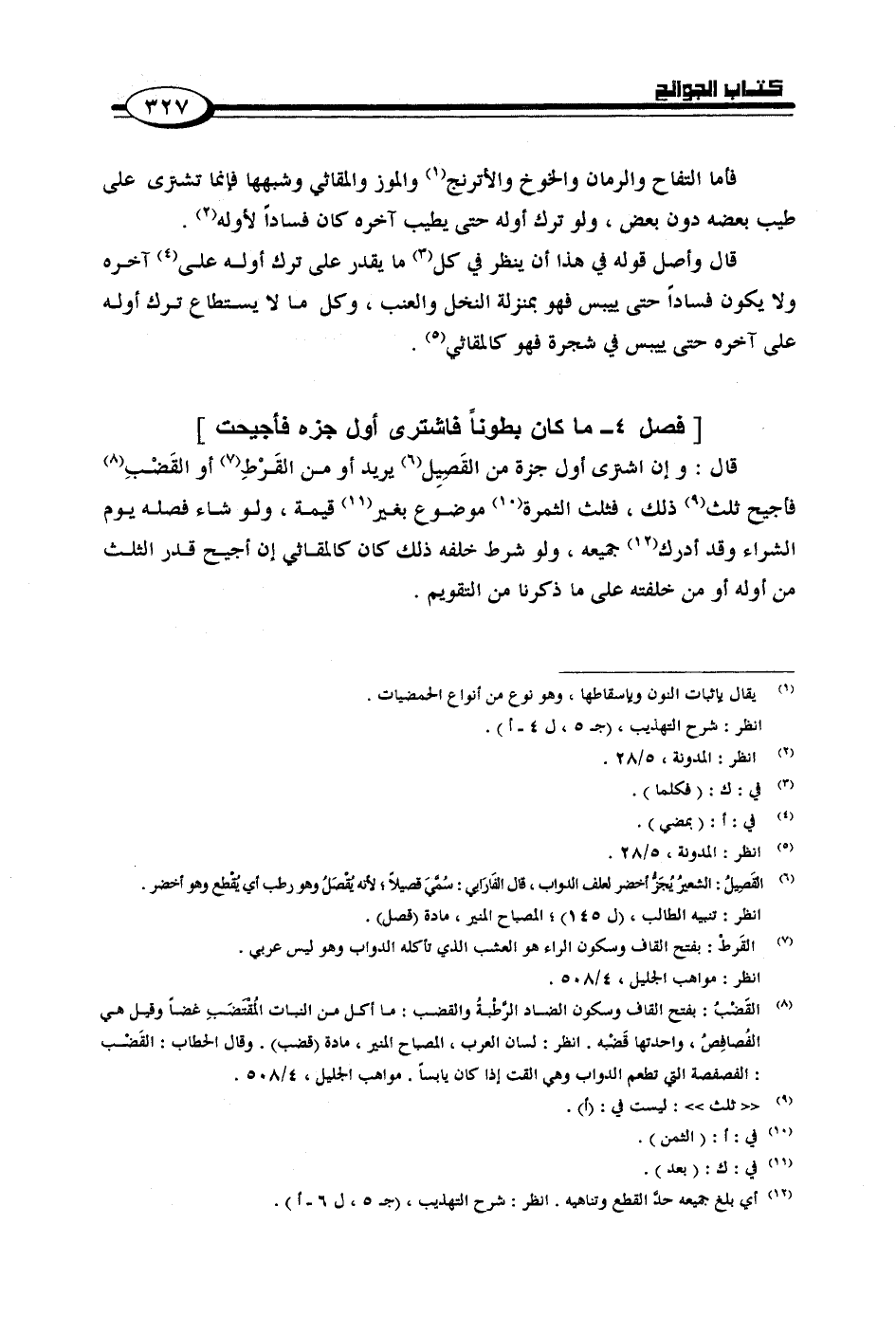 ] فصل 4 - ما كان بطوناً فاشترى أول جزه فأجيحت [