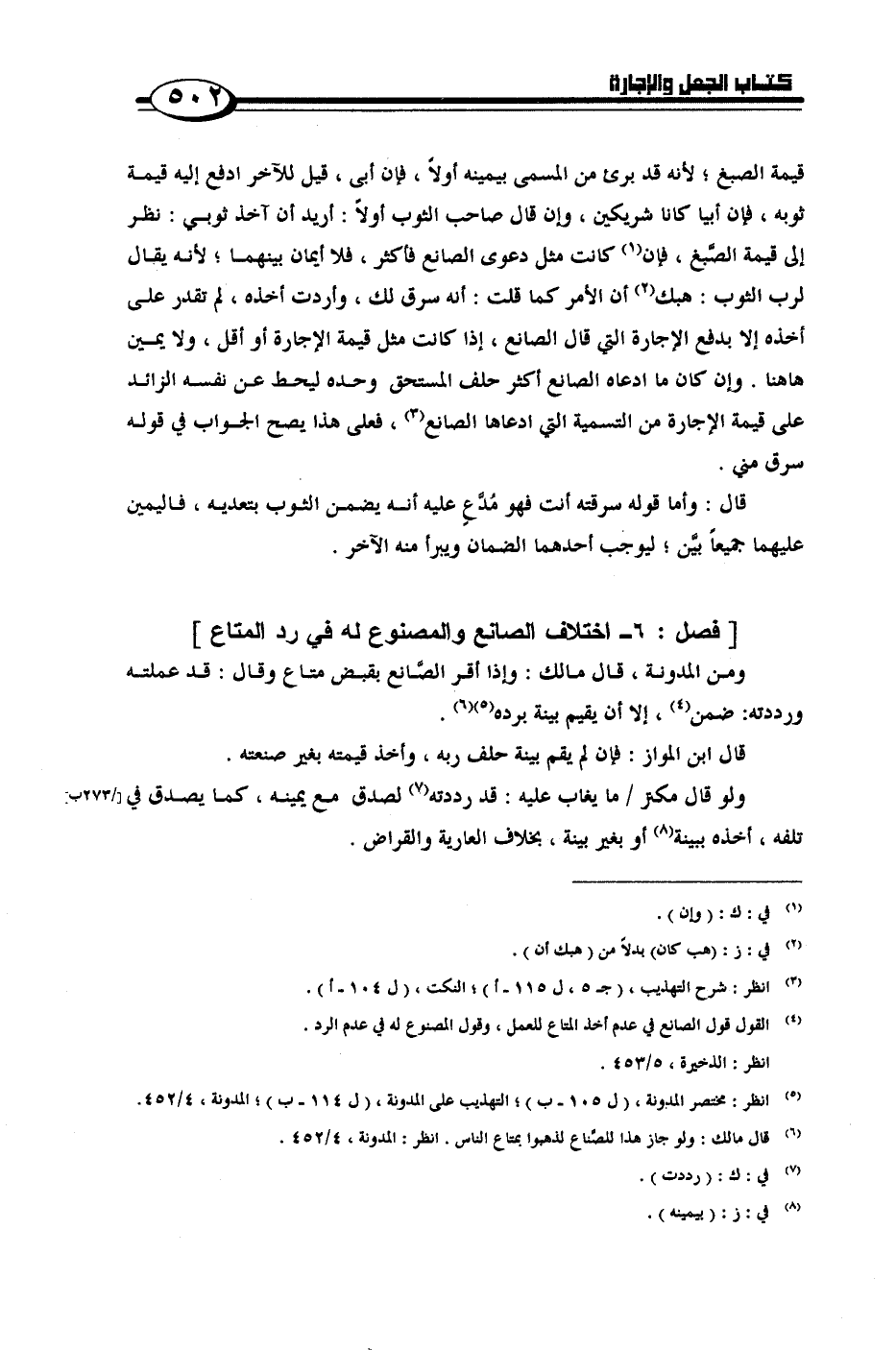 [فصل: 6 - اختلاف الصانع والمصنوع له في رد المتاع]