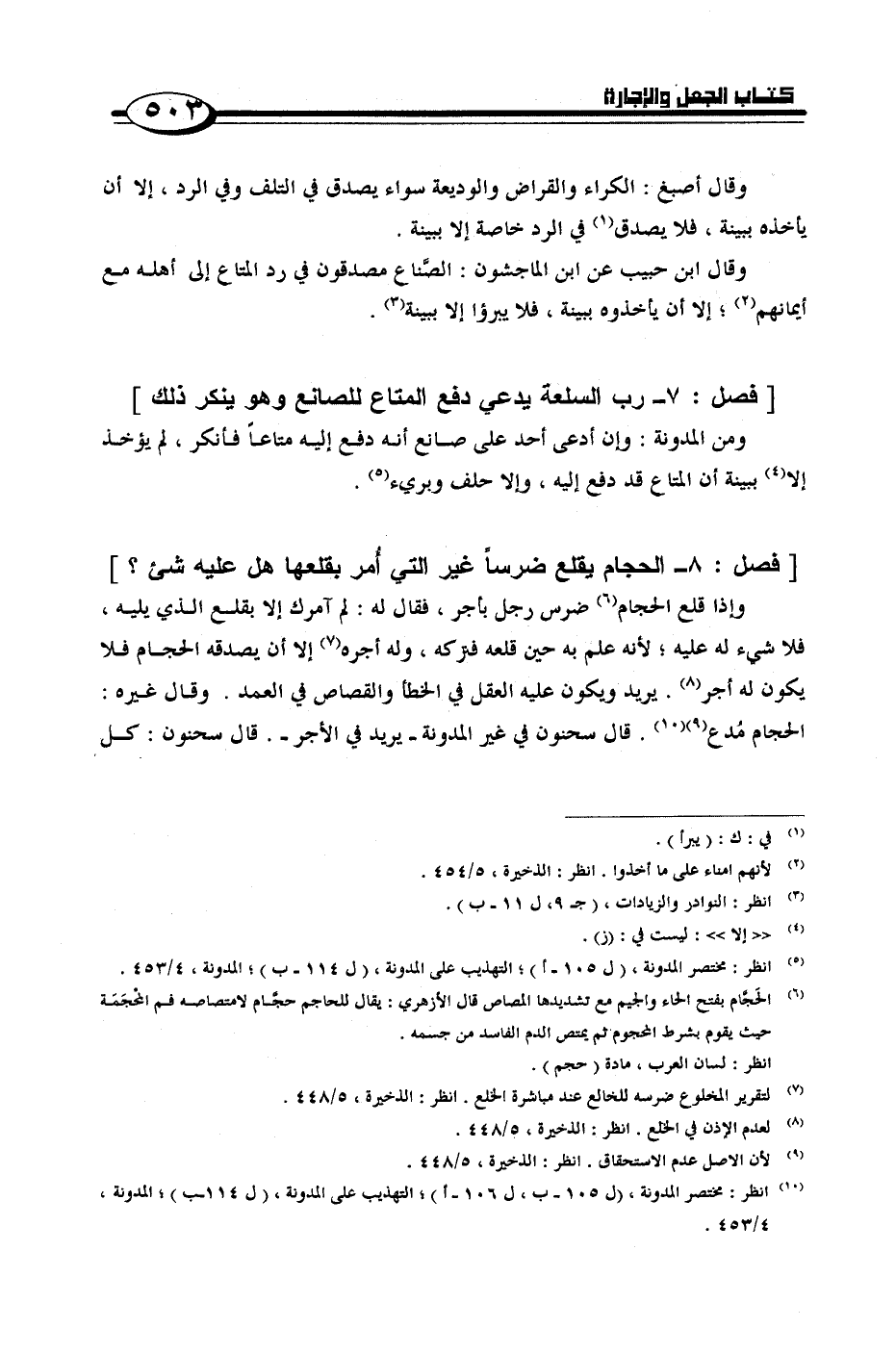 وقال ابن حبيب عن ابن الماجشون: الصَّناع مصدقون في رد المتاع إلى أهله مع أيمانهم؛ إلا أن يأخذوه ببينة, فلا يبرؤا إلا ببينة.